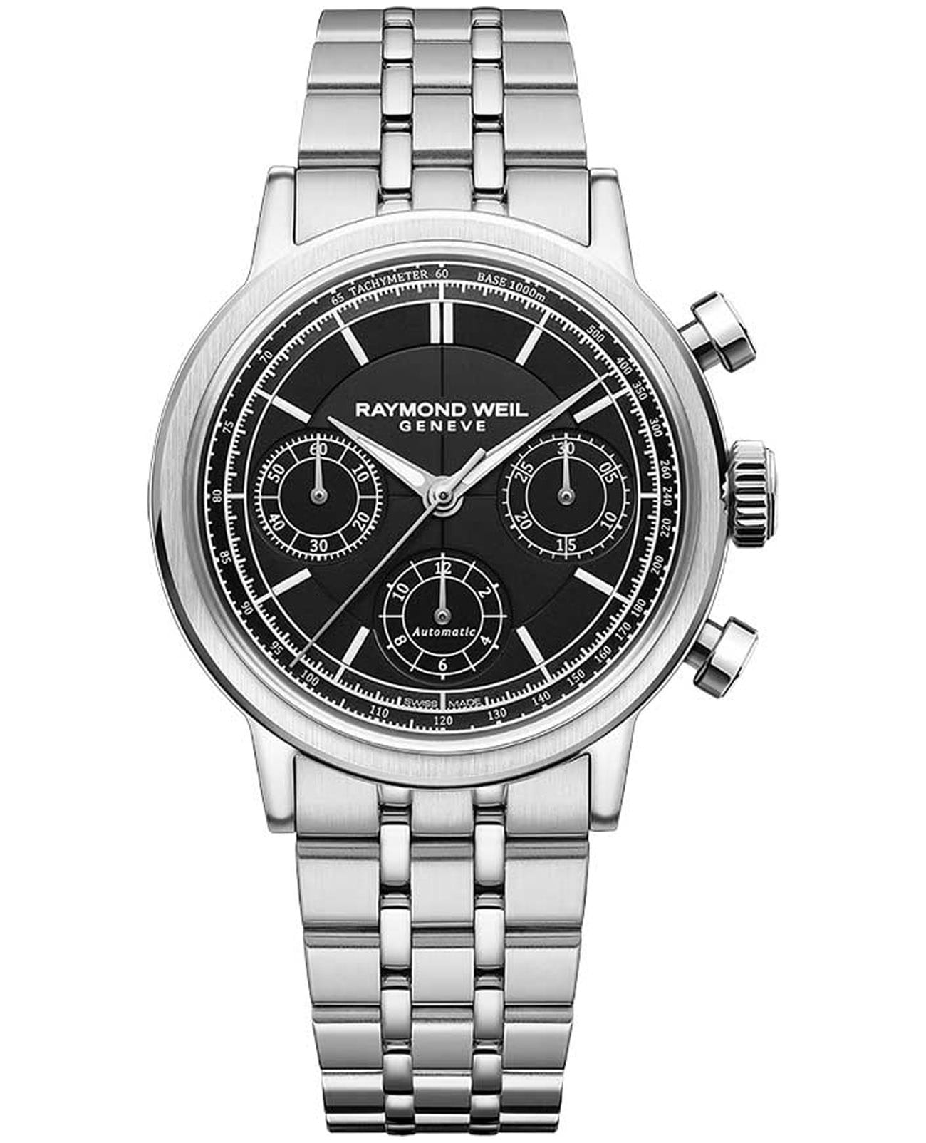 Стильные швейцарские часы Raymond Weil 397765-ST-20001 идеально подойдут современному мужчине, стремящемуся подчеркнуть свою индивидуальность. Эти механические часы-хронографХронографФункция позволяет измерять отрезки времени с особой точностью: часы, минуты, секунды. Верным признаком хронографа является наличие на циферблате 3 дополнительных окошек-счётчиков. оснащены секундомером и тахиметром, что делает их не только элегантными, но и функциональными. Запас хода составляет 62 часа, что обеспечивает надежность в использовании.