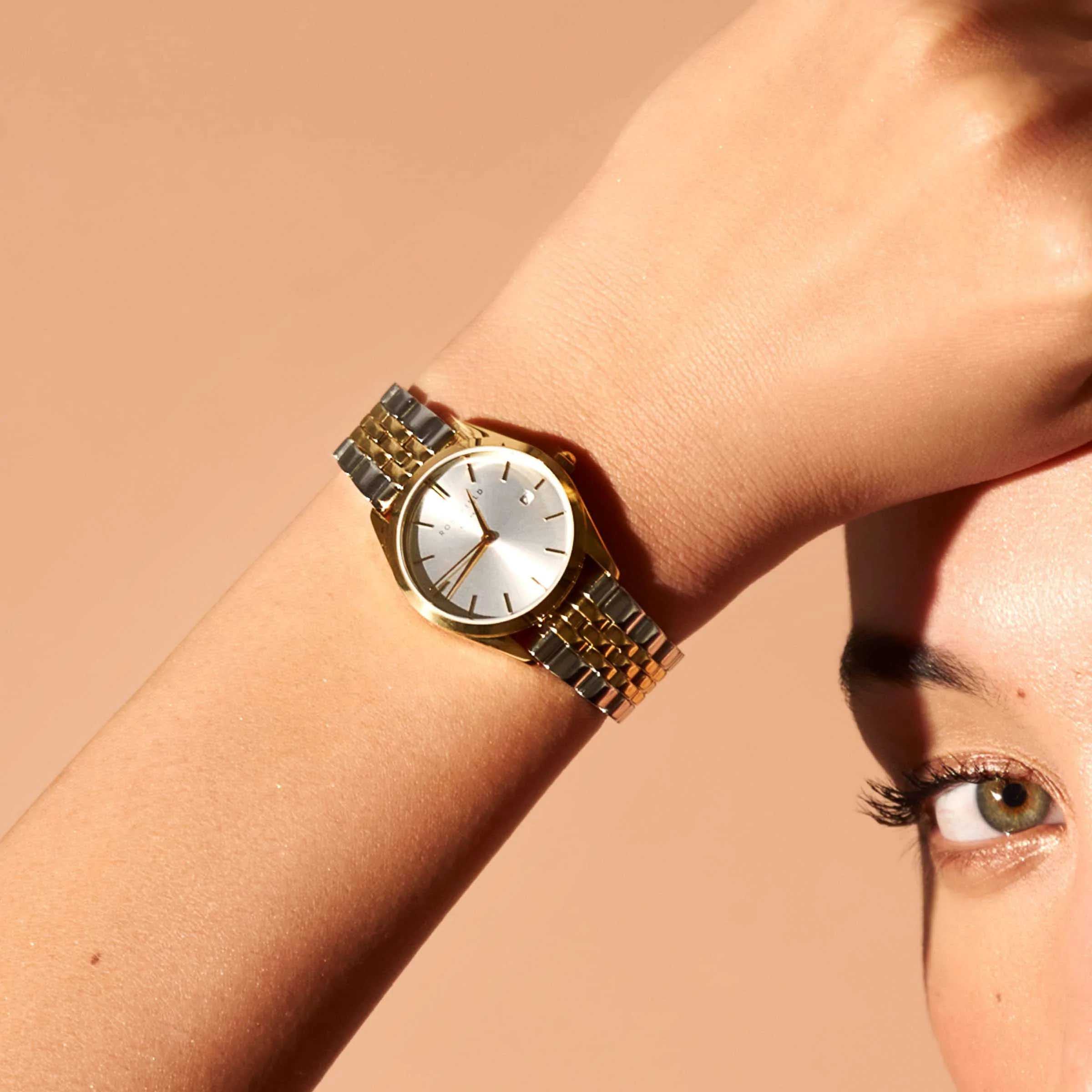 Американские женские наручные часы с кварцевым механизмом Rosefield The Ace ASDSSG-A16, кварцевый механизм с высокой точностью. Класс водозащиты: 30 метров, позволит защитить корпус от случайных брызг или капель дождя. Корпус часов изготовлен из стали, золотистого цвета.