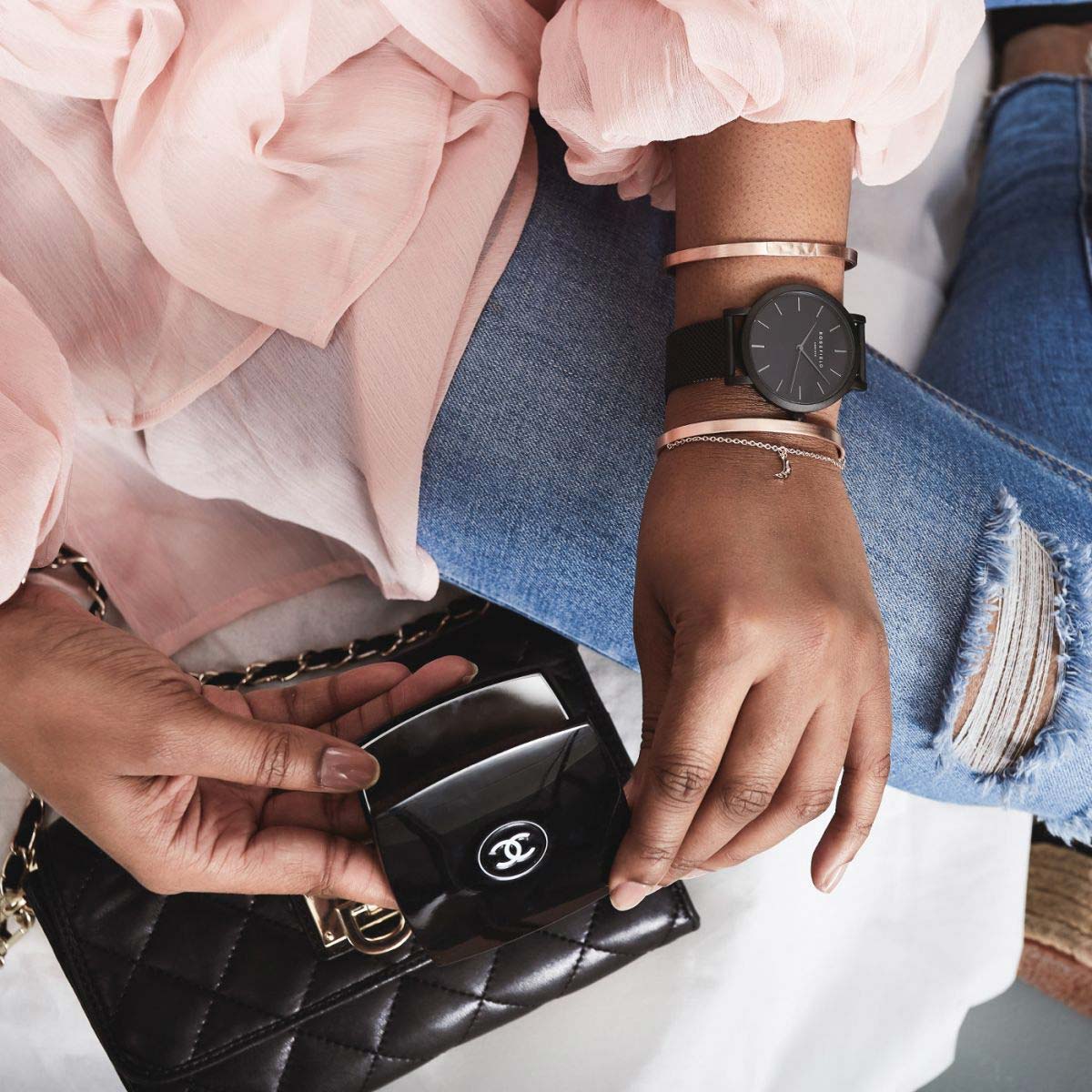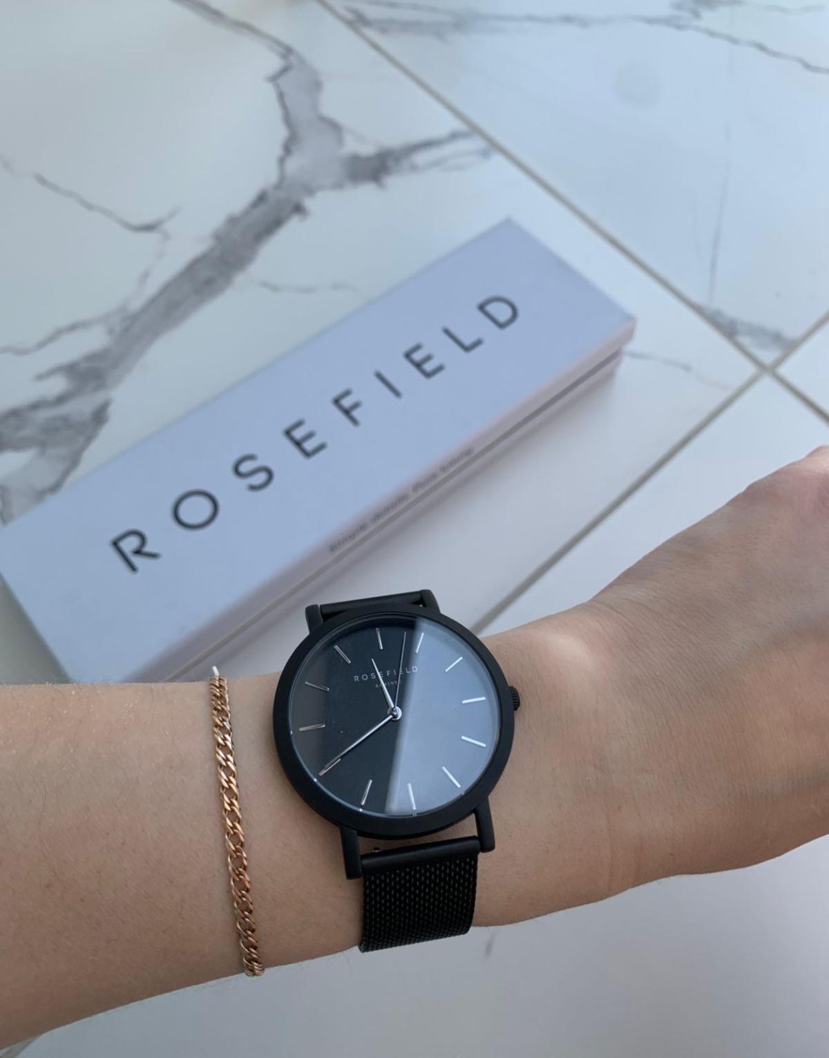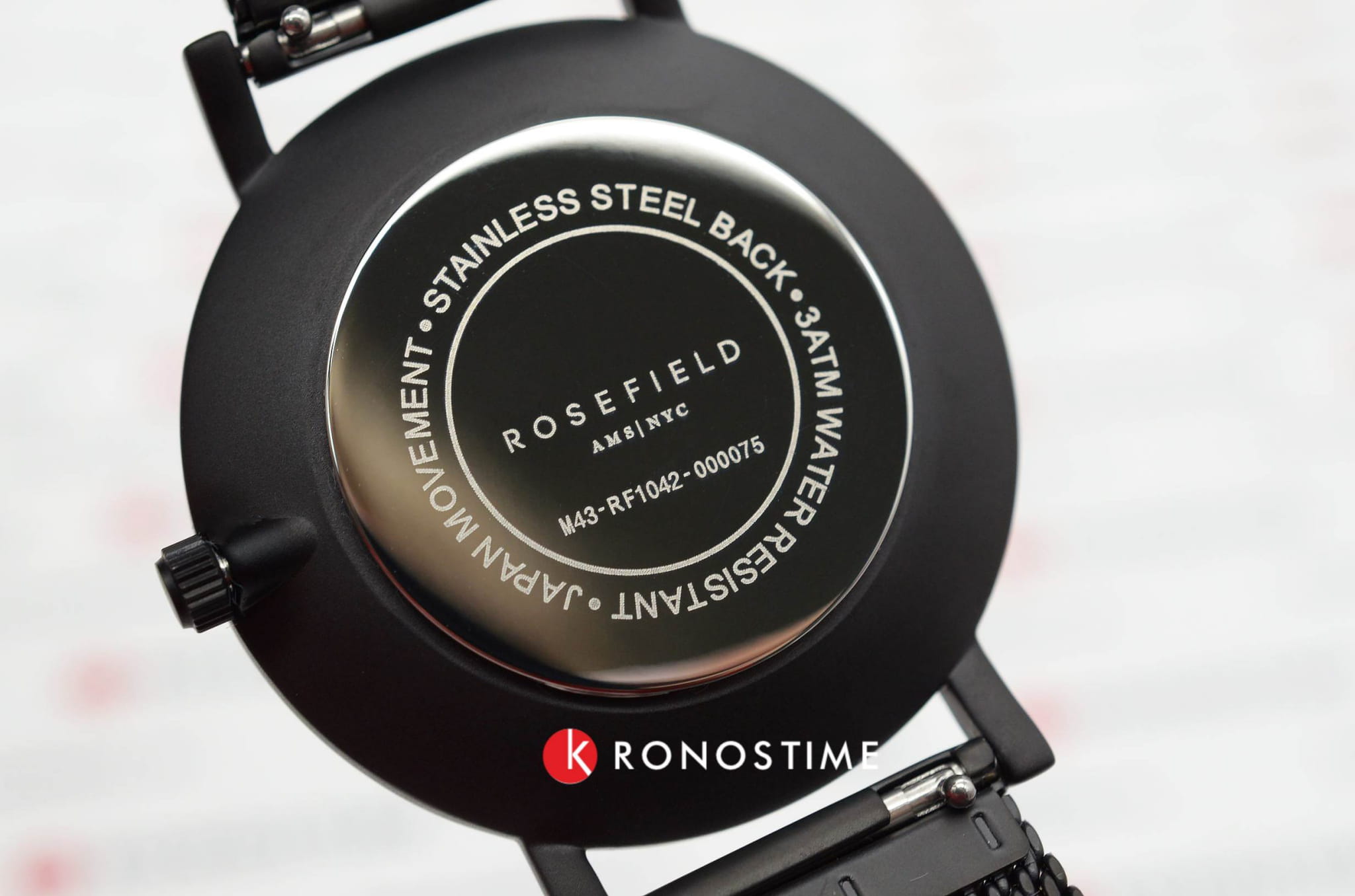 Американские женские наручные часы с кварцевым механизмом Rosefield The Mercer MBB-M43, кварцевый механизм с высокой точностью. Класс водозащиты: 30 метров, позволит защитить корпус от случайных брызг или капель дождя. Корпус часов изготовлен из стали, черного цвета.