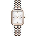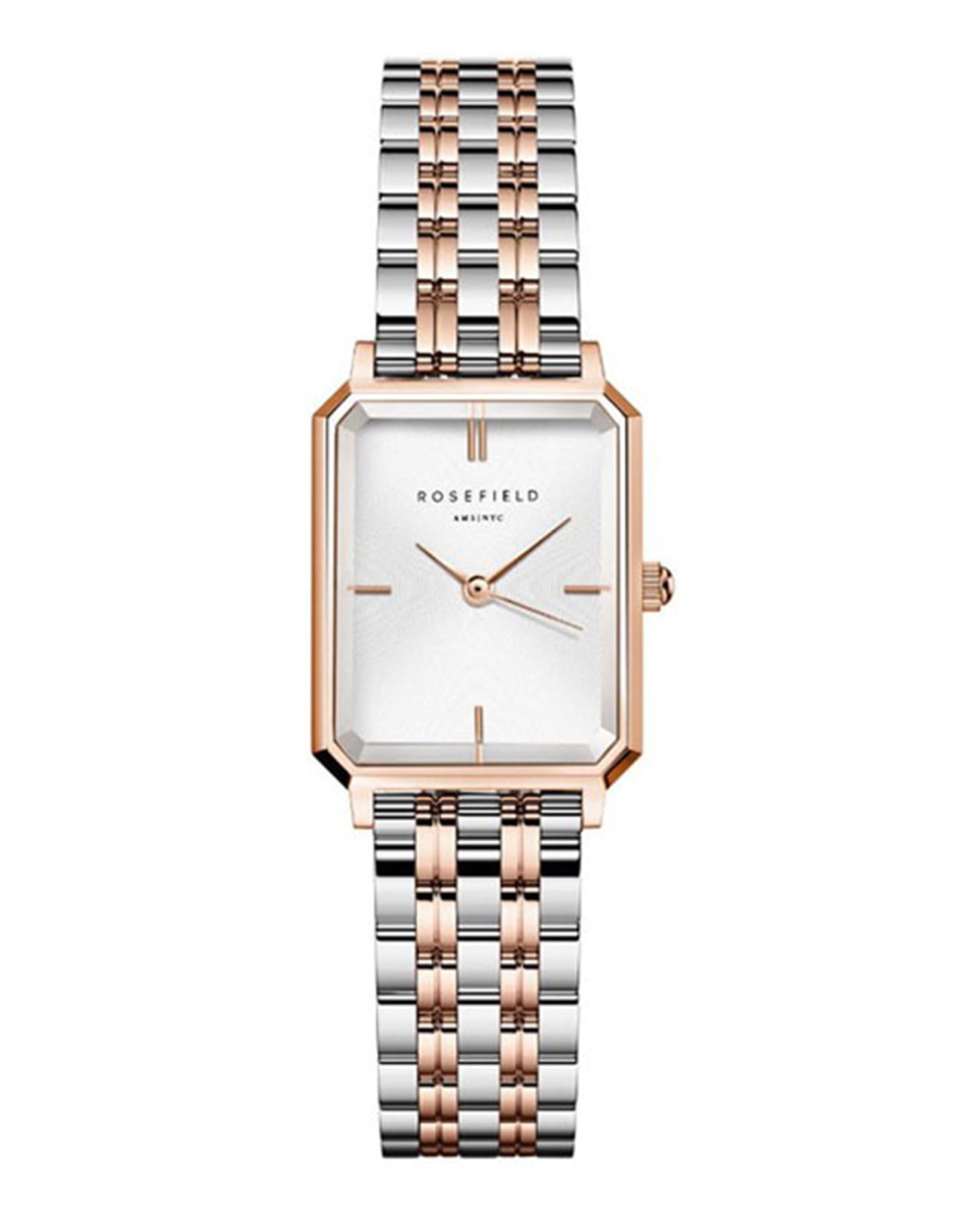 Женские кварцевые часы. Центральные часовая, минутная и секундная стрелки. Серебристый циферблат. Восьмиугольный корпус выполнен из металла с IP покрытием цвета розового золота. Размер корпуса составляет 19,5 х 24 мм, толщина 7 мм. Стальной браслет с частичным покрытием, браслетная застежка. Прочное минеральное стекло устойчивое к мелким механическим повреждениям. Водостойкость WR 30 (брызги).
