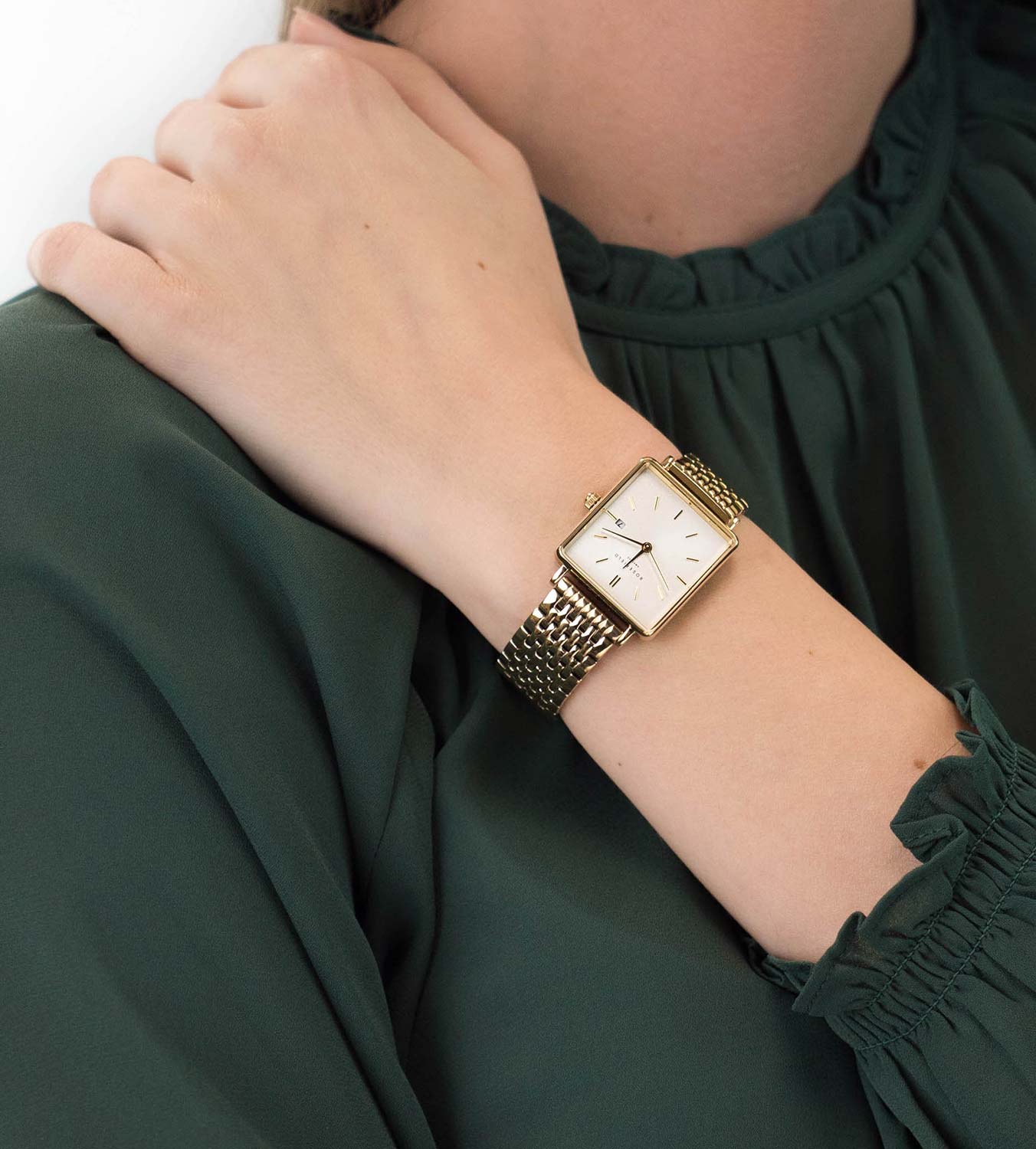 Американские женские наручные часы с кварцевым механизмом Rosefield The Boxy QWSG-Q09, кварцевый механизм с высокой точностью. Класс водозащиты: 30 метров, позволит защитить корпус от случайных брызг или капель дождя. Корпус часов изготовлен из стали, золотистого цвета.