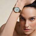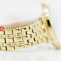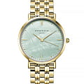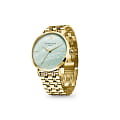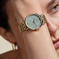 Женские кварцевые часы. Центральные часовая, минутная и секундная стрелки. Бирюзовый циферблат. Круглый корпус выполнен из полированной нержавеющей стали с IP-покрытиемIP-покрытиеМетод ионного напыления. Демонстрирует повышенную устойчивость к истиранию, окислению и химическим веществам. Под воздействием высокого давления и температуры около 1500°C молекулы металла надёжно соединяются с частицами корпуса часов. цвета желтого золота. Диаметр корпуса составляет 33 мм. Стальной браслет c IP-покрытиемIP-покрытиеМетод ионного напыления. Демонстрирует повышенную устойчивость к истиранию, окислению и химическим веществам. Под воздействием высокого давления и температуры около 1500°C молекулы металла надёжно соединяются с частицами корпуса часов. с ювелирной застежкой. Прочное минеральное стеклоМинеральное стеклоМинеральное стекло представляет собой искусственно выращенный минерал кварца. Такое стекло отличается особой устойчивостью к повреждениям и царапинам. Уступает по некоторым качествам сапфировому стеклу. устойчивое к мелким механическим повреждениям. Водостойкость WR 30 (брызги).