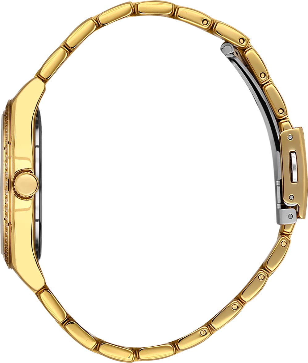 Женские кварцевые часы Santa Barbara Polo & Racquet Club — это стильный и практичный аксессуар. Корпус диаметром 36 мм и высотой 42,5 мм выполнен из латуни с IP-покрытиемIP-покрытиеМетод ионного напыления. Демонстрирует повышенную устойчивость к истиранию, окислению и химическим веществам. Под воздействием высокого давления и температуры около 1500°C молекулы металла надёжно соединяются с частицами корпуса часов.. БезельБезельВнешний ободок, закрепляющий стекло. В спортивных часах так называется поворотное кольцо с делениями на циферблате, выполняет роль таймера – замеряет отрезки времени на шкале. Неподвижный безель – элемент декора. Однонаправленно вращающийся безель на дайверских часах позволяет фиксировать моменты погружения и выныривания на поверхность. украшен кристаллами, придающими изделию изысканный блеск. Циферблат зелёного цвета оформлен по технологии Sunray («солнечные лучи»), дополнен накладными метками в виде штрихов и фирменным логотипом. Окошко даты расположено в положении 6 часов. Стрелки с люминесцентным покрытиемЛюминесцентное покрытиеПозволяет считывать показания времени в темноте. Производители наносят на стрелки, часовые индексы, безель или поверхность циферблата светонакопительный состав, дающий холодное свечение., обеспечивающим хорошую читаемость в темноте. Циферблат защищён минеральным стекломМинеральное стеклоМинеральное стекло представляет собой искусственно выращенный минерал кварца. Такое стекло отличается особой устойчивостью к повреждениям и царапинам. Уступает по некоторым качествам сапфировому стеклу.. Часы оснащены стальным браслетом с IP-покрытиемIP-покрытиеМетод ионного напыления. Демонстрирует повышенную устойчивость к истиранию, окислению и химическим веществам. Под воздействием высокого давления и температуры около 1500°C молекулы металла надёжно соединяются с частицами корпуса часов. и раскладной застёжкойРаскладная застёжкаТакой тип застёжки используется только на браслетах из металла. Она никогда не раскрывается полностью, происходит разделение на 2 и более частей. Раскладывающая застёжка снизит вероятность потери часов к минимуму.. Водонепроницаемость 50 м позволяет использовать часы в повседневных условиях. Идеальный выбор для тех, кто ценит стиль, надёжность и качество.
