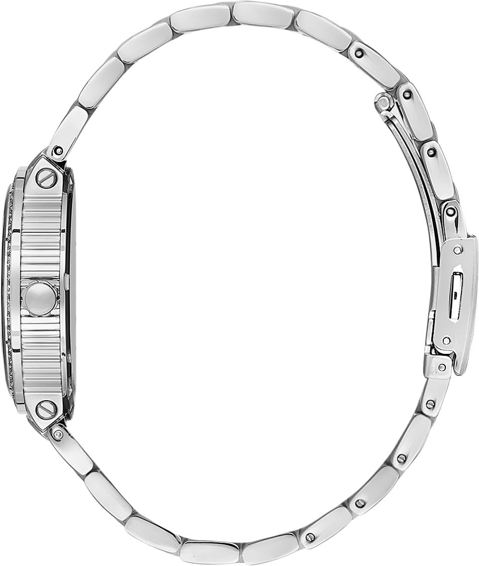 Женские кварцевые часы Santa Barbara Polo & Racquet Club Unique SB.1.10553-1 — это стильный аксессуар, подчеркивающий индивидуальность. Изысканный корпус диаметром 34 мм выполнен из нержавеющей стали 316L с безелемБезельВнешний ободок, закрепляющий стекло. В спортивных часах так называется поворотное кольцо с делениями на циферблате, выполняет роль таймера – замеряет отрезки времени на шкале. Неподвижный безель – элемент декора. Однонаправленно вращающийся безель на дайверских часах позволяет фиксировать моменты погружения и выныривания на поверхность., украшенным кристаллами. Изящный циферблат дополнен крупными римскими индексами, а также фирменным логотипом. Стрелки в стиле Breguet с люминесцентным покрытиемЛюминесцентное покрытиеПозволяет считывать показания времени в темноте. Производители наносят на стрелки, часовые индексы, безель или поверхность циферблата светонакопительный состав, дающий холодное свечение., обеспечивающим хорошую читаемость в темноте. Защиту циферблата обеспечивает минеральное стеклоМинеральное стеклоМинеральное стекло представляет собой искусственно выращенный минерал кварца. Такое стекло отличается особой устойчивостью к повреждениям и царапинам. Уступает по некоторым качествам сапфировому стеклу., устойчивое к мелким механическим повреждениям. Часы оснащены надежным стальным браслетом с раскладной застёжкойРаскладная застёжкаТакой тип застёжки используется только на браслетах из металла. Она никогда не раскрывается полностью, происходит разделение на 2 и более частей. Раскладывающая застёжка снизит вероятность потери часов к минимуму.. Водонепроницаемость 50 м позволяет использовать часы в повседневных условиях. Идеальный выбор для тех, кто ценит элегантный дизайн и качество.