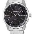 Seiko SNE527P1 — мужская модель из коллекции Conceptual Series Dress, отличающаяся строгим классическим стилем и практичностью. Корпус диаметром 40 мм и браслет выполнены из нержавеющей стали, создавая цельный и элегантный облик. Защитную функцию выполняет сапфировое стеклоСапфировое стеклоПрочный и надёжный материал из кристалла сапфира синтетического происхождения, характеризующийся особой твёрдостью и устойчивостью к царапинам и повреждениям., устойчивое к повседневным повреждениям. В основе модели лежит кварцевый механизм с технологией Tough SolarTough SolarТехнология основана на подзарядке аккумулятора от источника солнечного света, специальная панель улавливает солнечные лучи и преобразует их в энергию для работы часов. Достаточно пары минут нахождения на солнце для функционирования часов в течении суток., который питается от солнечного света и обеспечивает стабильную работу без необходимости регулярной замены батареи. Функционал включает индикацию часов, минут, секунд, а также календарь с указанием даты и дня недели в позиции «3 часа». Браслет оснащён раскладной застёжкойРаскладная застёжкаТакой тип застёжки используется только на браслетах из металла. Она никогда не раскрывается полностью, происходит разделение на 2 и более частей. Раскладывающая застёжка снизит вероятность потери часов к минимуму., которая обеспечивает удобство фиксации и надёжность при повседневном использовании.