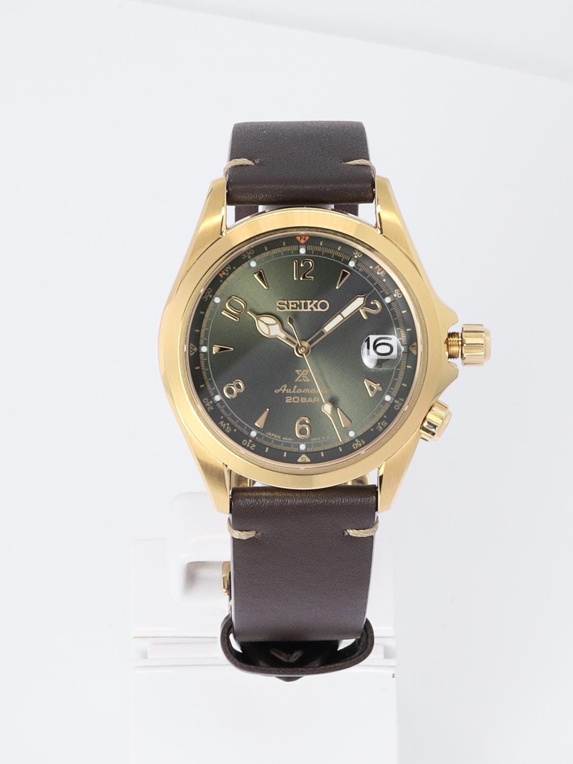 Мужские механические часы с автоподзаводом Seiko — это элегантная модель из серии Prospex, воплощающая японское мастерство и точность. Корпус диаметром 39,5 мм и толщиной 13 мм выполнен из стали с PVD-покрытиемPVDУльтратонкое покрытие наносится в технике вакуумного напыления, сочетает в себе нитрид титана особой прочности со слоем золота или оксида хрома. Несёт в себе декоративную или защитную функцию.. Циферблат зелёного цвета оформлен по технологии Sunray («солнечные лучи»), дополнен штрихами и арабскими цифрами. Окошко даты расположено в положении 3 часов и оснащено увеличительным стеклом. Стрелки и метки с люминесцентным покрытиемЛюминесцентное покрытиеПозволяет считывать показания времени в темноте. Производители наносят на стрелки, часовые индексы, безель или поверхность циферблата светонакопительный состав, дающий холодное свечение. LumiBrite, обеспечивающим хорошую читаемость в темноте. Циферблат защищён сапфировым стекломСапфировое стеклоПрочный и надёжный материал из кристалла сапфира синтетического происхождения, характеризующийся особой твёрдостью и устойчивостью к царапинам и повреждениям. с антибликовым покрытиемАнтибликовое покрытиеСлой оксида металла в 0,13-0,3 микрон, благодаря которому стекло часов не бликует и не отражает свет. Антибликовое покрытие уменьшает отражение света в 10 раз, обеспечивая отличную читаемость показателей циферблата. на внутренней поверхности. Механизм — автоматический калибр 6R35 (24 камня, частота 21 600 полуколебаний в час) с возможностью ручного завода и функцией , запас хода до 70 часов. Внутренний безельБезельВнешний ободок, закрепляющий стекло. В спортивных часах так называется поворотное кольцо с делениями на циферблате, выполняет роль таймера – замеряет отрезки времени на шкале. Неподвижный безель – элемент декора. Однонаправленно вращающийся безель на дайверских часах позволяет фиксировать моменты погружения и выныривания на поверхность. со шкалой компаса вращается с помощью головки на позиции 4 часов. Завинчивающаяся заводная головка с защитой и прозрачная задняя крышка повышают надёжность. Часы оснащены кожаным ремешком с тройной раскладной застёжкойРаскладная застёжкаТакой тип застёжки используется только на браслетах из металла. Она никогда не раскрывается полностью, происходит разделение на 2 и более частей. Раскладывающая застёжка снизит вероятность потери часов к минимуму.. Водонепроницаемость 200 м позволяет использовать часы для плавания и повседневного ношения. Идеальный выбор для тех, кто ценит стиль, функциональность и наследие.