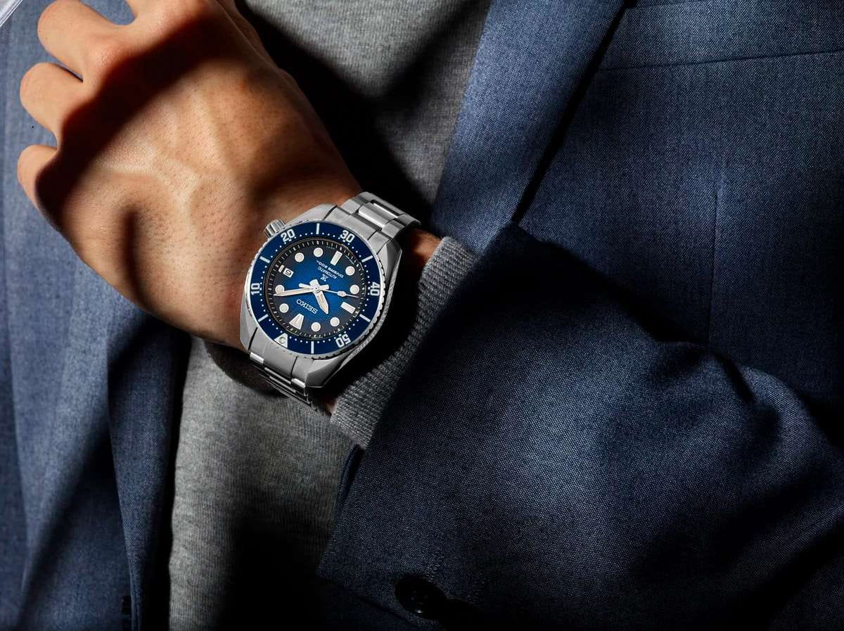 Seiko Prospex SPB321J1 — мужская модель, созданная для дайверов и ценителей функционального стиля. Корпус диаметром 45 мм выполнен из нержавеющей стали с сатинированной отделкой, а односторонний вращающийся безельБезельВнешний ободок, закрепляющий стекло. В спортивных часах так называется поворотное кольцо с делениями на циферблате, выполняет роль таймера – замеряет отрезки времени на шкале. Неподвижный безель – элемент декора. Однонаправленно вращающийся безель на дайверских часах позволяет фиксировать моменты погружения и выныривания на поверхность. с PVD-покрытиемPVDУльтратонкое покрытие наносится в технике вакуумного напыления, сочетает в себе нитрид титана особой прочности со слоем золота или оксида хрома. Несёт в себе декоративную или защитную функцию. с минутной шкалой позволяет контролировать время погружения. Защитную функцию выполняет сапфировое стеклоСапфировое стеклоПрочный и надёжный материал из кристалла сапфира синтетического происхождения, характеризующийся особой твёрдостью и устойчивостью к царапинам и повреждениям. с антибликовым покрытиемАнтибликовое покрытиеСлой оксида металла в 0,13-0,3 микрон, благодаря которому стекло часов не бликует и не отражает свет. Антибликовое покрытие уменьшает отражение света в 10 раз, обеспечивая отличную читаемость показателей циферблата., гарантирующим отличную читаемость даже под водой. В основе модели установлен автоматический калибр 6R35 с функциями часов, минут, секунд и даты, а также запасом хода до 70 часов. Водозащита 200 м (20 бар) соответствует международному стандарту ISO для профессиональных дайверских часов. Циферблат с текстурой, вдохновлённой арктическими льдами, оснащён крупными стрелками и индексами, покрытыми люминесцентным покрытиемЛюминесцентное покрытиеПозволяет считывать показания времени в темноте. Производители наносят на стрелки, часовые индексы, безель или поверхность циферблата светонакопительный состав, дающий холодное свечение., что обеспечивает превосходную видимость даже в полной темноте. Браслет из нержавеющей стали дополнен раскладной застёжкойРаскладная застёжкаТакой тип застёжки используется только на браслетах из металла. Она никогда не раскрывается полностью, происходит разделение на 2 и более частей. Раскладывающая застёжка снизит вероятность потери часов к минимуму. с системой удлинения для дайверов удлинение для дайверовУдлинение для дайверовЗастёжка с удлинением для дайверов представляет собой безопасное крепление, которое позволяет надевать часы поверх гидрокостюма. Гибкая застёжка удлиняется на 1-2 миллиметра., обеспечивающей удобство при использовании поверх гидрокостюма.