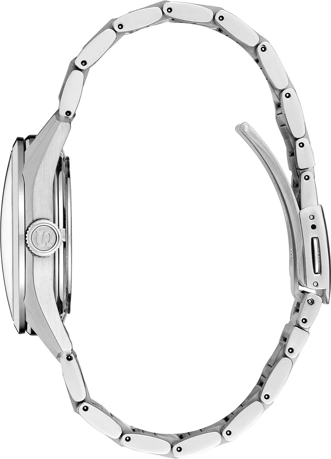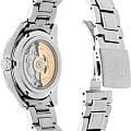 Элегантные механические часы Presage Sharp Edged продолжают серию, вдохновлённую богатым культурным наследием Японии. Их дизайн циферблата берёт мотивы из древнего узора «Асаноха», известного ещё с эпохи Хэйан и часто встречающегося в традиционных ремёслах. Эта коллекция сочетает в себе японское мастерство и современные технологии. Часы оснащены механическим калибром 6R5J с автоподзаводом и возможностью ручной подзаводки. Механизм работает на частоте 21 600 полуколебаний в час, имеет 24 драгоценных камня и обеспечивает внушительный запас хода — до 72 часов. Также реализована функция стоп-секунды для точной установки времени, а также защита от магнитных полей до 4800 А/м. Циферблат оформлен с использованием строгих штриховых меток, а через прозрачное окошко можно наблюдать за работой механизма. Часы поддерживают отображение времени в 12- и 24-часовом формате. Защиту циферблата обеспечивает сапфировое стеклоСапфировое стеклоПрочный и надёжный материал из кристалла сапфира синтетического происхождения, характеризующийся особой твёрдостью и устойчивостью к царапинам и повреждениям. выпуклой формы с антибликовым покрытием с обеих сторон, что делает его не только прочным, но и удобным для считывания информации при любом освещении. Задняя крышка выполнена завинчивающейся и прозрачной, что подчёркивает связь между внешним дизайном и внутренней технологией. Браслет изготовлен из нержавеющей стали и оснащён раскладной застёжкойРаскладная застёжкаТакой тип застёжки используется только на браслетах из металла. Она никогда не раскрывается полностью, происходит разделение на 2 и более частей. Раскладывающая застёжка снизит вероятность потери часов к минимуму., обеспечивающей надёжную фиксацию и комфорт при ношении. Часы обладают водонепроницаемостью до 100 метров, что позволяет использовать их не только в повседневной жизни, но и при плавании или занятиях водными видами спорта. Стрелки и метки дополнены люминесцентным покрытиемЛюминесцентное покрытиеПозволяет считывать показания времени в темноте. Производители наносят на стрелки, часовые индексы, безель или поверхность циферблата светонакопительный состав, дающий холодное свечение. LumiBrite, обеспечивающим отличную читаемость в условиях слабого освещения. Эти часы станут достойным аксессуаром для тех, кто ценит глубину дизайна, точность механизма и историю, воплощённую в каждом элементе.