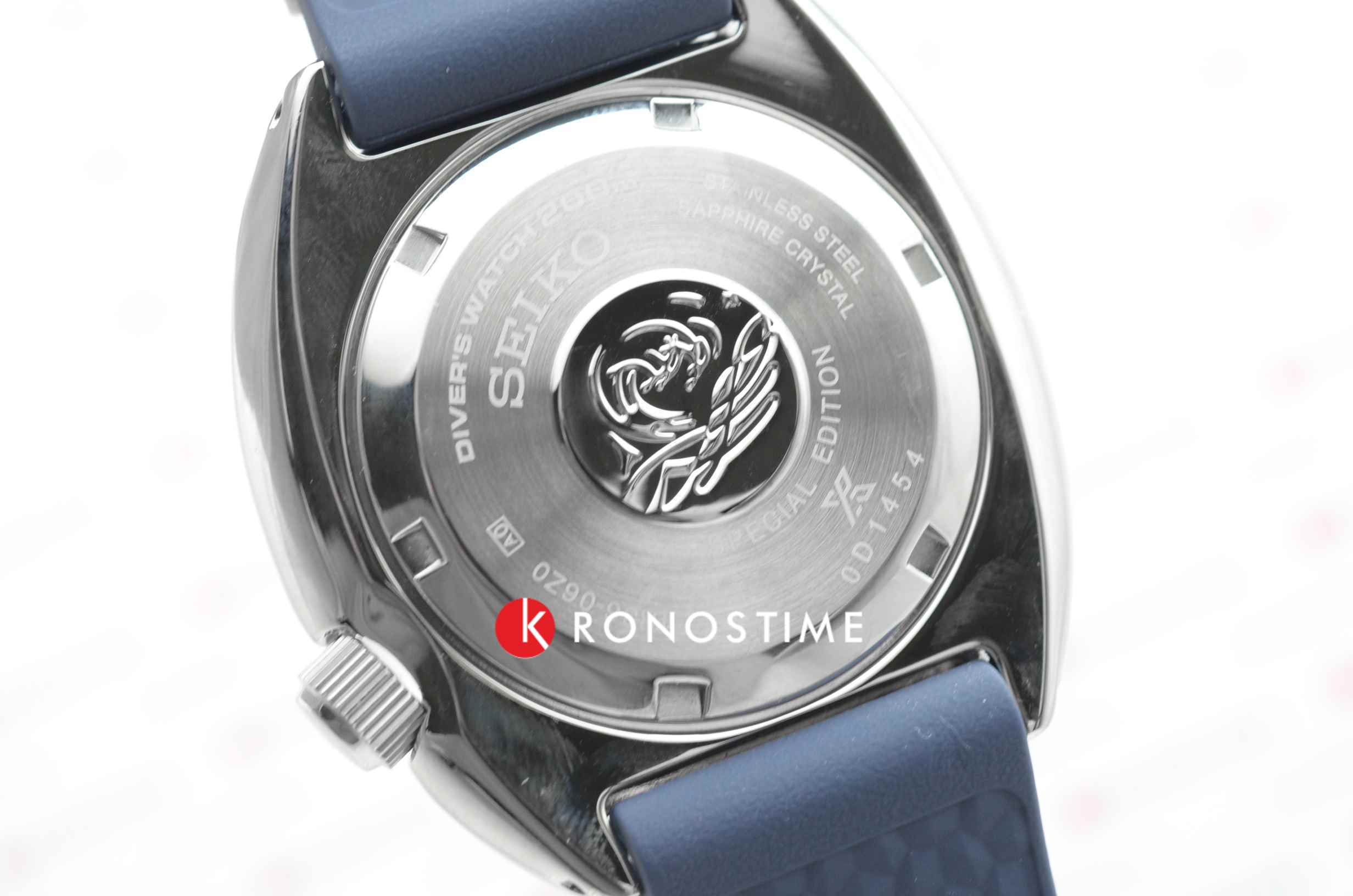 Seiko Prospex SRPF77K1 — профессиональная дайверская модель, созданная для надёжной работы в экстремальных условиях. Корпус диаметром 45 мм выполнен из нержавеющей стали с защитной «черепахообразной» формой, а односторонний вращающийся безельБезельВнешний ободок, закрепляющий стекло. В спортивных часах так называется поворотное кольцо с делениями на циферблате, выполняет роль таймера – замеряет отрезки времени на шкале. Неподвижный безель – элемент декора. Однонаправленно вращающийся безель на дайверских часах позволяет фиксировать моменты погружения и выныривания на поверхность. с PVD-покрытиемPVDУльтратонкое покрытие наносится в технике вакуумного напыления, сочетает в себе нитрид титана особой прочности со слоем золота или оксида хрома. Несёт в себе декоративную или защитную функцию. с минутной разметкой позволяет контролировать время погружения. Защитную функцию выполняет сапфировое стеклоСапфировое стеклоПрочный и надёжный материал из кристалла сапфира синтетического происхождения, характеризующийся особой твёрдостью и устойчивостью к царапинам и повреждениям. с увеличительной линзой над апертурой даты и дня недели в позиции «3 часа». В основе лежит автоматический механизм калибра 4R36 с функциями часов, минут, секунд, даты и дня недели, а также возможностью ручного завода и стоп-секундой. Водозащита 200 м (20 бар) соответствует профессиональным стандартам ISO для дайверских часов. Крупные стрелки и метки покрыты люминесцентным покрытиемЛюминесцентное покрытиеПозволяет считывать показания времени в темноте. Производители наносят на стрелки, часовые индексы, безель или поверхность циферблата светонакопительный состав, дающий холодное свечение., что обеспечивает превосходную читаемость под водой и в темноте. Часы комплектуются каучуковым ремешком с классической застёжкой, который гарантирует комфорт и устойчивость к влаге.