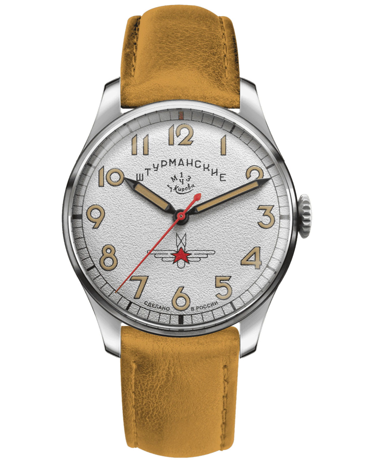 Лимитированные мужские российские механические часы коллекции Гагарин Наследие 42 Штурманские 2416/4005401, механический механизм (автоматический калибр) с высокой точностью. Лимитированная серия - 2000 экземпляров.  Класс водозащиты: 50 метров, позволит защитить корпус от случайных брызг или капель дождя. Корпус часов изготовлен из стали. Коричневый кожаный ремешок со стандартной пряжкой подчеркивает утилитарность и практичность модели, ее настоящий мужской характер. Минеральное стеклоМинеральное стеклоМинеральное стекло представляет собой искусственно выращенный минерал кварца. Такое стекло отличается особой устойчивостью к повреждениям и царапинам. Уступает по некоторым качествам сапфировому стеклу. устойчивое к мелким механическим повреждениям. Стрелки и метки с люминесцентным покрытиемЛюминесцентное покрытиеПозволяет считывать показания времени в темноте. Производители наносят на стрелки, часовые индексы, безель или поверхность циферблата светонакопительный состав, дающий холодное свечение.. Дизайн задней крышки модели выполнен в том же стиле – на нем вы увидите барельеф с изображением Юрия Гагарина и надпись "первые часы в космосе" и порядковый номер часов. Работают часы за счет механического калибра Полет 2416. В механизме 31 камень, частота 19800 полуколебаний в час. Запас хода 31 час. Противоударное устройство оси баланса. Предохранительное устройство от перезаводки пружины. Индивидуальная нумерация. Метки в виде арабских цифр.