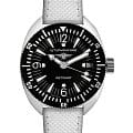 Штурманские мужские российские механические часы с утолщённым сферическим минеральным стекломМинеральное стеклоМинеральное стекло представляет собой искусственно выращенный минерал кварца. Такое стекло отличается особой устойчивостью к повреждениям и царапинам. Уступает по некоторым качествам сапфировому стеклу. Штурманские Амфибия 2416/7771300, механический механизм (автоматический калибр) с высокой точностью. Класс водозащиты: 200 метров, позволит плавать, нырять и заниматься другими водными видами спорта. Корпус часов изготовлен из стали. Силиконовый ремешок на стандартной застёжке. БезельБезельВнешний ободок, закрепляющий стекло. В спортивных часах так называется поворотное кольцо с делениями на циферблате, выполняет роль таймера – замеряет отрезки времени на шкале. Неподвижный безель – элемент декора. Однонаправленно вращающийся безель на дайверских часах позволяет фиксировать моменты погружения и выныривания на поверхность. с PVD-покрытиемPVDУльтратонкое покрытие наносится в технике вакуумного напыления, сочетает в себе нитрид титана особой прочности со слоем золота или оксида хрома. Несёт в себе декоративную или защитную функцию.. Стрелки и метки с люминесцентным покрытиемЛюминесцентное покрытиеПозволяет считывать показания времени в темноте. Производители наносят на стрелки, часовые индексы, безель или поверхность циферблата светонакопительный состав, дающий холодное свечение.. Окошко даты находится в положении 3 часа. Амфибия созданы на основе российского механического калибра с автоматическим подзаводом, 2416.  На задней крышке – как дань исторической модели – рельефные изображения всадника на дельфине.