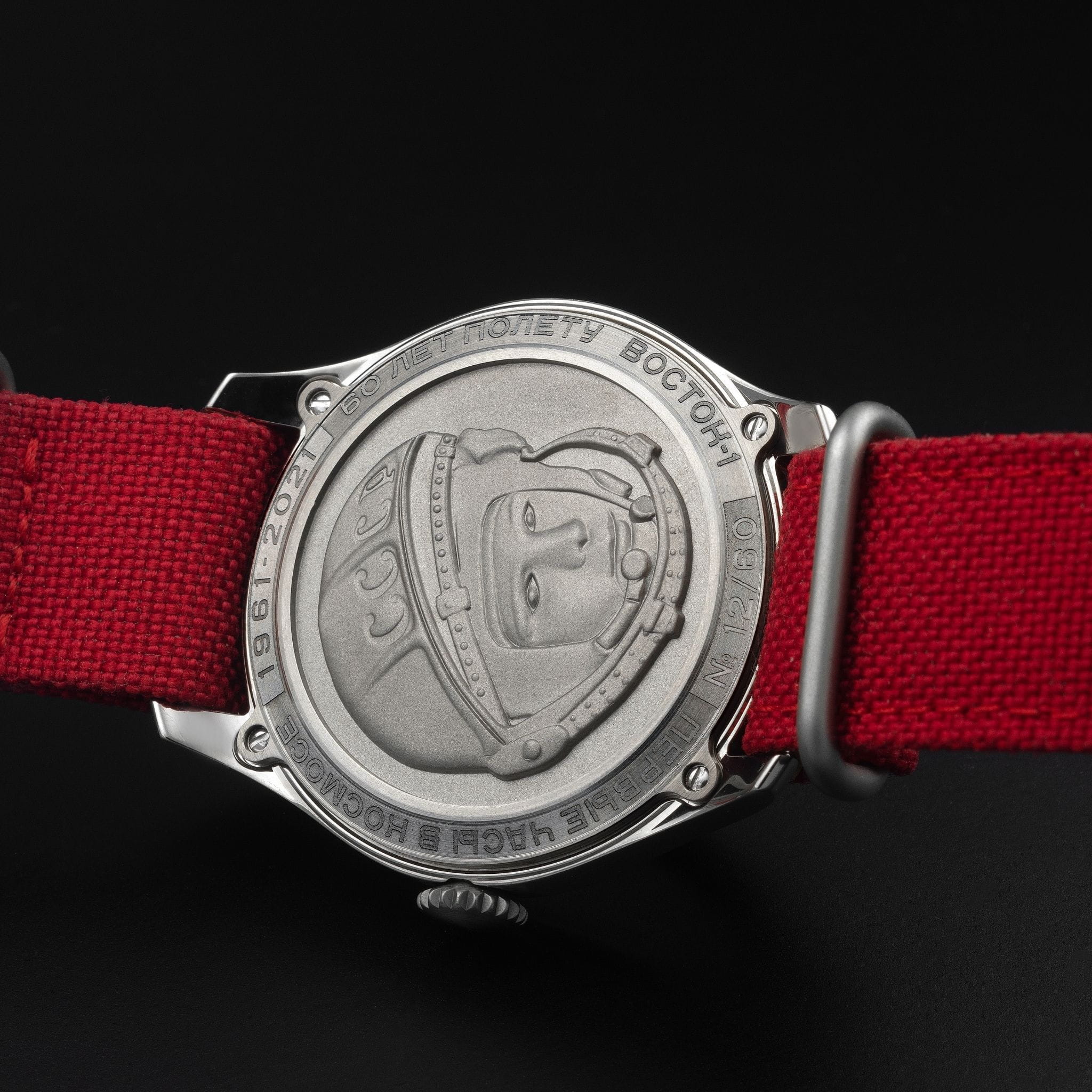 Мужские российские механические часы Штурманские Гагарин Наследие 2609/3787200, механический механизм (автоматический калибр) с высокой точностью. Минеральное стеклоМинеральное стеклоМинеральное стекло представляет собой искусственно выращенный минерал кварца. Такое стекло отличается особой устойчивостью к повреждениям и царапинам. Уступает по некоторым качествам сапфировому стеклу. устойчивое к мелким механическим повреждениям. Класс водозащиты: 30 метров, позволит защитить корпус от случайных брызг или капель дождя. Корпус часов изготовлен из титана. Текстильный ремешок на стандартной застёжке. Стрелки и метки с люминесцентным покрытиемЛюминесцентное покрытиеПозволяет считывать показания времени в темноте. Производители наносят на стрелки, часовые индексы, безель или поверхность циферблата светонакопительный состав, дающий холодное свечение.. Чёткая, читаемая минутная шкала уходит за приделы видимой области циферблата, подчёркивая изящность ободка корпуса. Оцифровка циферблата – отличительная особенность данной модели, её дизайн не изменился с самой первый, гагаринской серии. Заводная головка конической формы с удобной насечкой повторяет дизайн оригинальной модели. Лимитированная серия: 60 шт.