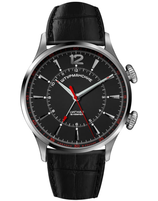 Мужские российские механические часы Штурманские 2612/1801730, механический механизм (автоматический калибр) с высокой точностью. Минеральное стеклоМинеральное стеклоМинеральное стекло представляет собой искусственно выращенный минерал кварца. Такое стекло отличается особой устойчивостью к повреждениям и царапинам. Уступает по некоторым качествам сапфировому стеклу. устойчивое к мелким механическим повреждениям. Класс водозащиты: 30 метров, позволит защитить корпус от случайных брызг или капель дождя. Корпус часов изготовлен из стали. Кожаный ремешок на стандартной застёжке. Чёткая, читаемая минутная шкала уходит за приделы видимой области циферблата, подчёркивая изящность ободка корпуса. Стрелки и метки с люминесцентным покрытиемЛюминесцентное покрытиеПозволяет считывать показания времени в темноте. Производители наносят на стрелки, часовые индексы, безель или поверхность циферблата светонакопительный состав, дающий холодное свечение..