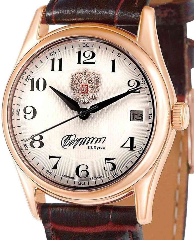 Российские механические наручные часы Слава 1503951/300-NH15, которые станут идеальным аксессуаром для повседневного ношения. Эти часы сочетают в себе элегантность и практичность, предлагая безупречный стиль и надежность. Оснащенные механизмом Seiko TMI NH15 с автоподзаводом, они обеспечивают точность и долговечность. Стальной корпус с IP-покрытиемIP-покрытиеМетод ионного напыления. Демонстрирует повышенную устойчивость к истиранию, окислению и химическим веществам. Под воздействием высокого давления и температуры около 1500°C молекулы металла надёжно соединяются с частицами корпуса часов. и сапфировым стекломСапфировое стеклоПрочный и надёжный материал из кристалла сапфира синтетического происхождения, характеризующийся особой твёрдостью и устойчивостью к царапинам и повреждениям. защищает белый циферблат с арабскими цифрами. На циферблате изображены герб Российской Федерации и автограф В.В. Путина. Часы также имеют календарь с окошком даты на 3 часах и водозащиту до 50WR, что делает их надежными в различных условиях. Текстурированный кожаный ремешок с классической застежкой завершает этот изысканный образ.