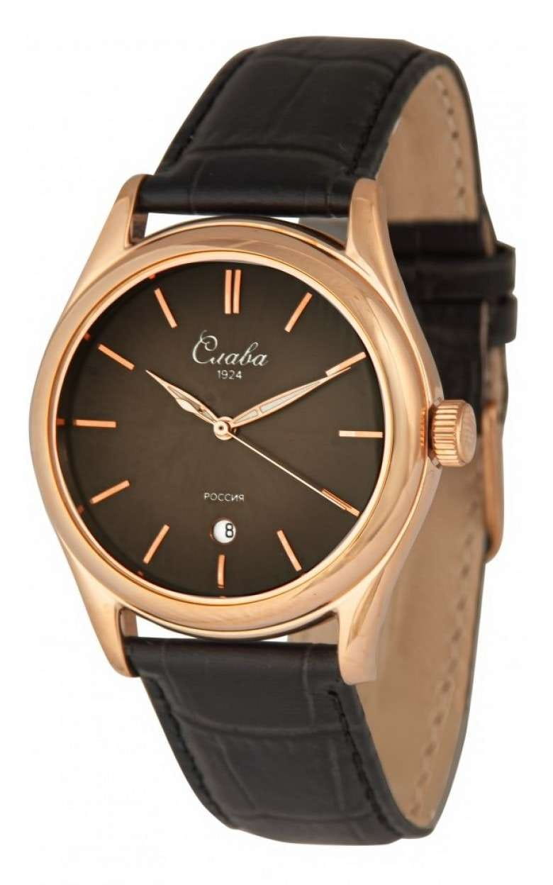 Российские наручные часы Слава Сенат 2493522/300-2115 станут отличным дополнением к вашему образу и идеальным выбором для тех, кто ценит стиль, комфорт и надежность. Эти часы оснащены японским кварцевым механизмом Miyota 2115, что гарантирует их точность и долговечность. Корпус часов диаметром 38 мм и толщиной 11 мм выполнен из прочной стали с золотистым IP-покрытиемIP-покрытиеМетод ионного напыления. Демонстрирует повышенную устойчивость к истиранию, окислению и химическим веществам. Под воздействием высокого давления и температуры около 1500°C молекулы металла надёжно соединяются с частицами корпуса часов., а коричневый циферблат с эффектом "солнечные лучи" изящными метками защищен сапфировым стекломСапфировое стеклоПрочный и надёжный материал из кристалла сапфира синтетического происхождения, характеризующийся особой твёрдостью и устойчивостью к царапинам и повреждениям., устойчивым к царапинам. Окошко календаря, расположенное в положении 6 часов, добавляет функциональности и удобства в повседневном использовании. Стрелки с люминесцентным покрытиемЛюминесцентное покрытиеПозволяет считывать показания времени в темноте. Производители наносят на стрелки, часовые индексы, безель или поверхность циферблата светонакопительный состав, дающий холодное свечение., что облегчает чтение времени даже в условиях слабого освещения. Эти часы обладают водозащитой 50WR, что позволяет не переживать за их сохранность в условиях повышенной влажности. Завершает образ кожаный ремешок с классической застежкой, обеспечивающий комфортную посадку на запястье.