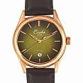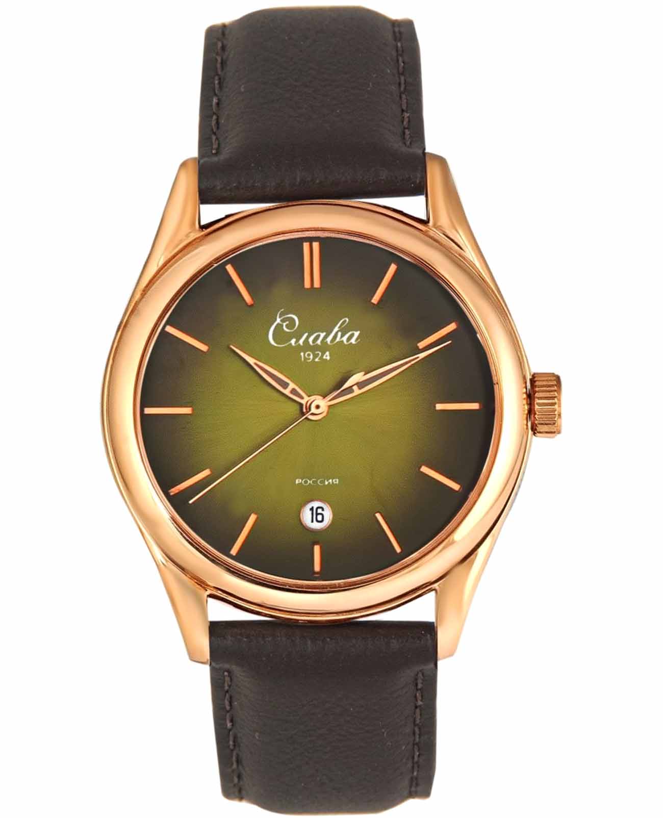 Российские наручные часы Слава Сенат 2493523/300-2115 станут отличным дополнением к вашему образу и идеальным выбором для тех, кто ценит стиль, комфорт и надежность. Эти часы оснащены японским кварцевым механизмом Miyota 2115, что гарантирует их точность и долговечность. Корпус часов диаметром 38 мм и толщиной 11 мм выполнен из прочной стали с золотистым IP-покрытиемIP-покрытиеМетод ионного напыления. Демонстрирует повышенную устойчивость к истиранию, окислению и химическим веществам. Под воздействием высокого давления и температуры около 1500°C молекулы металла надёжно соединяются с частицами корпуса часов., а зеленый циферблат с эффектом "солнечные лучи" изящными метками защищен сапфировым стекломСапфировое стеклоПрочный и надёжный материал из кристалла сапфира синтетического происхождения, характеризующийся особой твёрдостью и устойчивостью к царапинам и повреждениям., устойчивым к царапинам. Окошко календаря, расположенное в положении 6 часов, добавляет функциональности и удобства в повседневном использовании. Стрелки с люминесцентным покрытиемЛюминесцентное покрытиеПозволяет считывать показания времени в темноте. Производители наносят на стрелки, часовые индексы, безель или поверхность циферблата светонакопительный состав, дающий холодное свечение., что облегчает чтение времени даже в условиях слабого освещения. Эти часы обладают водозащитой 50WR, что позволяет не переживать за их сохранность в условиях повышенной влажности. Завершает образ кожаный ремешок с классической застежкой, обеспечивающий комфортную посадку на запястье.