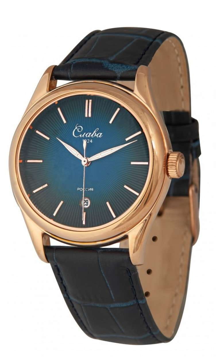 Российские наручные часы Слава Сенат 2493531/300-2115 станут отличным дополнением к вашему образу и идеальным выбором для тех, кто ценит стиль, комфорт и надежность. Эти часы оснащены японским кварцевым механизмом Miyota 2115, что гарантирует их точность и долговечность. Корпус часов диаметром 38 мм и толщиной 11 мм выполнен из прочной стали с золотистым IP-покрытиемIP-покрытиеМетод ионного напыления. Демонстрирует повышенную устойчивость к истиранию, окислению и химическим веществам. Под воздействием высокого давления и температуры около 1500°C молекулы металла надёжно соединяются с частицами корпуса часов., а синий циферблат с изящными метками защищен сапфировым стекломСапфировое стеклоПрочный и надёжный материал из кристалла сапфира синтетического происхождения, характеризующийся особой твёрдостью и устойчивостью к царапинам и повреждениям., устойчивым к царапинам. Окошко календаря, расположенное в положении 6 часов, добавляет функциональности и удобства в повседневном использовании. Стрелки с люминесцентным покрытиемЛюминесцентное покрытиеПозволяет считывать показания времени в темноте. Производители наносят на стрелки, часовые индексы, безель или поверхность циферблата светонакопительный состав, дающий холодное свечение., что облегчает чтение времени даже в условиях слабого освещения. Эти часы обладают водозащитой 50WR, что позволяет не переживать за их сохранность в условиях повышенной влажности. Завершает образ кожаный ремешок с классической застежкой, обеспечивающий комфортную посадку на запястье.