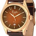 Российские наручные часы Слава Сенат 2493535/300-2115 станут отличным дополнением к вашему образу и идеальным выбором для тех, кто ценит стиль, комфорт и надежность. Эти часы оснащены японским кварцевым механизмом Miyota 2115, что гарантирует их точность и долговечность. Корпус часов диаметром 38 мм и толщиной 11 мм выполнен из прочной стали с золотистым IP-покрытиемIP-покрытиеМетод ионного напыления. Демонстрирует повышенную устойчивость к истиранию, окислению и химическим веществам. Под воздействием высокого давления и температуры около 1500°C молекулы металла надёжно соединяются с частицами корпуса часов., а коричневый циферблат с изящными метками защищен сапфировым стекломСапфировое стеклоПрочный и надёжный материал из кристалла сапфира синтетического происхождения, характеризующийся особой твёрдостью и устойчивостью к царапинам и повреждениям., устойчивым к царапинам. Окошко календаря, расположенное в положении 6 часов, добавляет функциональности и удобства в повседневном использовании. Стрелки с люминесцентным покрытиемЛюминесцентное покрытиеПозволяет считывать показания времени в темноте. Производители наносят на стрелки, часовые индексы, безель или поверхность циферблата светонакопительный состав, дающий холодное свечение., что облегчает чтение времени даже в условиях слабого освещения. Эти часы обладают водозащитой 50WR, что позволяет не переживать за их сохранность в условиях повышенной влажности. Завершает образ кожаный ремешок с классической застежкой, обеспечивающий комфортную посадку на запястье.