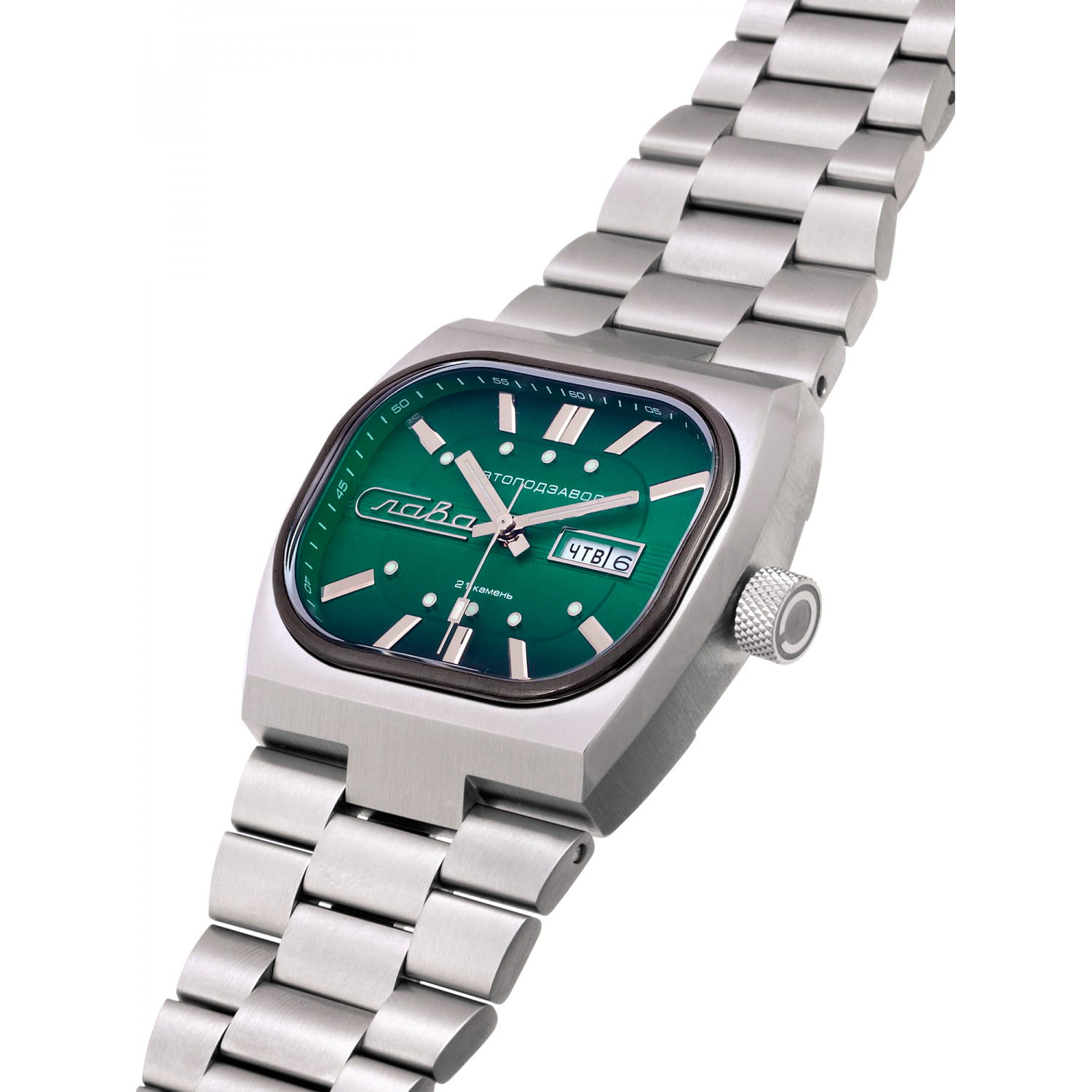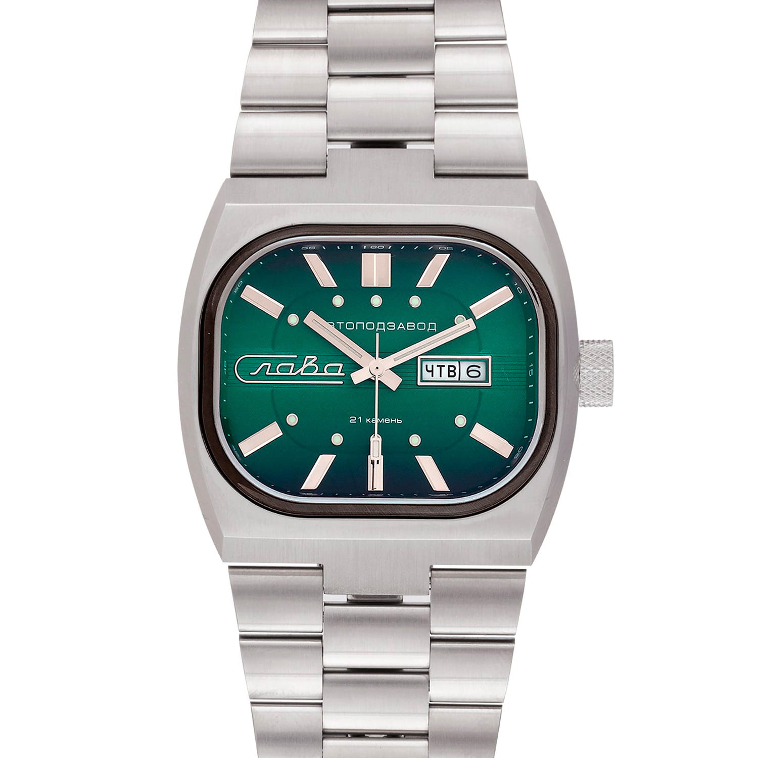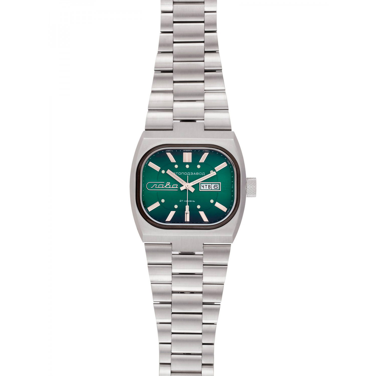 Российские часы Слава 3042704/100-8205 оснащены механизмом Miyota 8205, что обеспечивает исключительную надежность и точность хода. Корпус и браслет часов выполнены из стали, что придает им долговечность и устойчивость к внешним воздействиям. Сапфировое стеклоСапфировое стеклоПрочный и надёжный материал из кристалла сапфира синтетического происхождения, характеризующийся особой твёрдостью и устойчивостью к царапинам и повреждениям.. Класс водозащиты часов составляет 100 метров, позволит плавать, нырять и заниматься другими водными видами спорта. Эти часы идеально подойдут для повседневного использования, сочетая в себе стиль, надежность и функциональность. Стрелки и метки с люминесцентным покрытиемЛюминесцентное покрытиеПозволяет считывать показания времени в темноте. Производители наносят на стрелки, часовые индексы, безель или поверхность циферблата светонакопительный состав, дающий холодное свечение.. Окошки дня недели и даты находятся в положении 3 часа. Стальной браслет на раскладной застёжкеРаскладная застёжкаТакой тип застёжки используется только на браслетах из металла. Она никогда не раскрывается полностью, происходит разделение на 2 и более частей. Раскладывающая застёжка снизит вероятность потери часов к минимуму..
