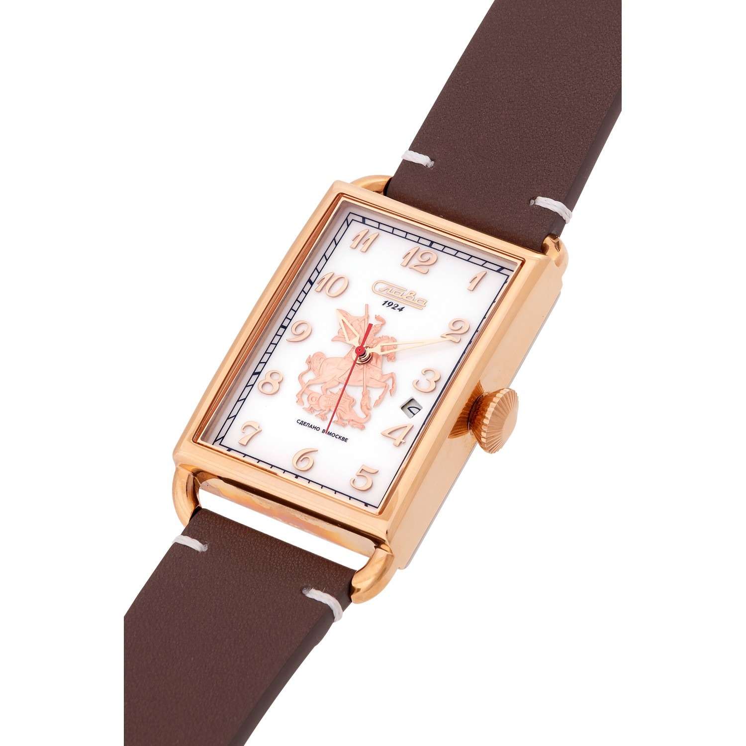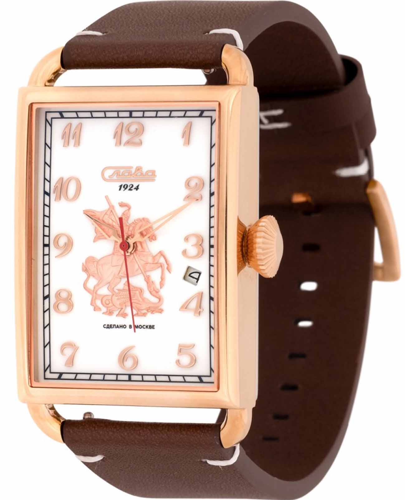 Часы Слава Москва 8703785/300-2414 — это воплощение элегантности и стиля, которое станет идеальным дополнением к вашему деловому гардеробу. Созданные в России, они оснащены надежным механическим механизмом калибра Слава 2414. Корпус выполнен из высококачественной стали с PVDPVDУльтратонкое покрытие наносится в технике вакуумного напыления, сочетает в себе нитрид титана особой прочности со слоем золота или оксида хрома. Несёт в себе декоративную или защитную функцию. покрытием, что обеспечивает долговечность и изысканный внешний вид. Белый циферблат украшен изображением Георгия Победоносца и защищен прочным сапфировым стекломСапфировое стеклоПрочный и надёжный материал из кристалла сапфира синтетического происхождения, характеризующийся особой твёрдостью и устойчивостью к царапинам и повреждениям., которое устойчиво к царапинам. Арабские цифры и окошко даты, расположенное между отметками 3 и 4 часа, добавляют функциональности и удобства в использовании. Задняя крышка, крепящаяся на 4 винтах, украшена надписью «Москва», подчеркивая уникальность и оригинальность модели. Кожаный ремешок с классической застежкой и системой быстрой замены не только обеспечивает комфорт, но и позволяет легко менять его по вашему желанию. Часы обладают водозащитой 50WR, что делает их подходящими для ежедневного ношения. Компактные габариты и вес в 70 грамм делают их удобными и практически незаметными на запястье. Эта лимитированная серия выпущена в количестве всего 500 экземпляров, что придает особую ценность и эксклюзивность вашему выбору. Часы поставляются в стильной подарочной упаковке, что делает их отличным подарком для ценителей высокого качества и утонченного дизайна.