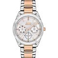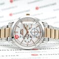 Женские наручные часы Slazenger SL.09.2032.4.05 сочетают в себе элегантный дизайн и функциональность, подходящие для повседневного использования. Модель обладает круглым корпусом диаметром 35 мм, выполненным из суперметалла с IP-покрытиемIP-покрытиеМетод ионного напыления. Демонстрирует повышенную устойчивость к истиранию, окислению и химическим веществам. Под воздействием высокого давления и температуры около 1500°C молекулы металла надёжно соединяются с частицами корпуса часов., что обеспечивает устойчивость к царапинам и коррозии. Браслет изготовлен из суперметалла с двухцветным покрытием (золотой и серебристый), дополненный раскладной застежкойРаскладная застёжкаТакой тип застёжки используется только на браслетах из металла. Она никогда не раскрывается полностью, происходит разделение на 2 и более частей. Раскладывающая застёжка снизит вероятность потери часов к минимуму., обеспечивающей удобство и надежность при ношении. Циферблат белого перламутрового цвета украшен люминесцентным покрытиемЛюминесцентное покрытиеПозволяет считывать показания времени в темноте. Производители наносят на стрелки, часовые индексы, безель или поверхность циферблата светонакопительный состав, дающий холодное свечение. на стрелках, что позволяет легко определять время в темноте. Для защиты циферблата используется минеральное стеклоМинеральное стеклоМинеральное стекло представляет собой искусственно выращенный минерал кварца. Такое стекло отличается особой устойчивостью к повреждениям и царапинам. Уступает по некоторым качествам сапфировому стеклу., устойчивое к царапинам и повреждениям. Часы оснащены кварцевым механизмом, обеспечивающим точность хода с погрешностью не более ±15 секунд в месяц. Модель также включает функции отображения даты, дня недели и 24-часового формата времени, что делает их практичными для ежедневного использования. Водонепроницаемость часов составляет 30 метров (3 ATM), что позволяет использовать их при мытье рук или под дождем, но не рекомендуется для плавания или дайвинга. Вес модели — 89 грамм, что обеспечивает комфортное ношение. Производитель предоставляет гарантию сроком 12 месяцев. Slazenger SL.09.2032.4.05 — это стильный аксессуар, который подчеркнет элегантность и утонченность образа современной женщины.