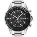 Мужские наручные часы Slazenger SL.09.2056.2.01 — это стильный и функциональный аксессуар, сочетающий в себе современный дизайн и надежность. Модель обладает круглым корпусом диаметром 48 мм, выполненным из металлического сплава. БезельБезельВнешний ободок, закрепляющий стекло. В спортивных часах так называется поворотное кольцо с делениями на циферблате, выполняет роль таймера – замеряет отрезки времени на шкале. Неподвижный безель – элемент декора. Однонаправленно вращающийся безель на дайверских часах позволяет фиксировать моменты погружения и выныривания на поверхность. с IP-покрытиемIP-покрытиеМетод ионного напыления. Демонстрирует повышенную устойчивость к истиранию, окислению и химическим веществам. Под воздействием высокого давления и температуры около 1500°C молекулы металла надёжно соединяются с частицами корпуса часов. обеспечивает устойчивость к царапинам и коррозии. Браслет изготовлен из суперметалла с раскладной застежкойРаскладная застёжкаТакой тип застёжки используется только на браслетах из металла. Она никогда не раскрывается полностью, происходит разделение на 2 и более частей. Раскладывающая застёжка снизит вероятность потери часов к минимуму., которая гарантирует удобство и надежность при ношении. Циферблат черного цвета украшен стрелками с люминесцентным покрытиемЛюминесцентное покрытиеПозволяет считывать показания времени в темноте. Производители наносят на стрелки, часовые индексы, безель или поверхность циферблата светонакопительный состав, дающий холодное свечение., что позволяет легко определять время даже в условиях слабого освещения. Для защиты циферблата используется минеральное стеклоМинеральное стеклоМинеральное стекло представляет собой искусственно выращенный минерал кварца. Такое стекло отличается особой устойчивостью к повреждениям и царапинам. Уступает по некоторым качествам сапфировому стеклу., устойчивое к царапинам и повреждениям. Часы оснащены кварцевым механизмом Miyota, обеспечивающим точность хода с погрешностью не более ±15 секунд в месяц. Модель также включает функции отображения даты, дня недели, 24-часового формата времени и второго часового поясаВторой часовой поясФункция, позволяющая отображать время двух часовых поясов одновременно., что делает их практичными для повседневного использования. Водонепроницаемость часов составляет 5 атмосфер (50 метров), что позволяет использовать их при плавании, но не рекомендуется для дайвинга. Вес модели — 148 грамм, что обеспечивает комфортное ношение. Производитель предоставляет гарантию сроком 12 месяцев. Slazenger SL.09.2056.2.01 — это универсальный аксессуар, который подчеркнет стиль и практичность в любом образе мужчины.