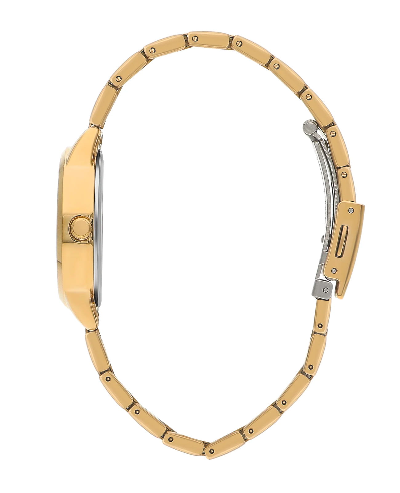 Женские наручные часы Slazenger SL.09.2071.3.08 представляют собой элегантное сочетание классики и современных технологий. Модель обладает круглым корпусом диаметром 32 мм, изготовленным из суперметалла с IP-покрытиемIP-покрытиеМетод ионного напыления. Демонстрирует повышенную устойчивость к истиранию, окислению и химическим веществам. Под воздействием высокого давления и температуры около 1500°C молекулы металла надёжно соединяются с частицами корпуса часов., что обеспечивает высокую устойчивость к внешним воздействиям и привлекательный внешний вид. Браслет выполнен с частичным IP-покрытиемIP-покрытиеМетод ионного напыления. Демонстрирует повышенную устойчивость к истиранию, окислению и химическим веществам. Под воздействием высокого давления и температуры около 1500°C молекулы металла надёжно соединяются с частицами корпуса часов. золотистого цвета и оснащен раскладной застежкойРаскладной замокДанный вариант застежки используется только на часах с металлическим браслетом. Отличительная особенность такого крепления в том, что длина браслета становится универсальной и вы можете самостоятельно отрегулировать нужный вам размер – застежка просто двигается по браслету часов., гарантирующей комфортное ношение и безопасность. Серебристый циферблат украшен фианитами, добавляя модели особую роскошь. Для защиты используется минеральное стеклоМинеральное стеклоМинеральное стекло представляет собой искусственно выращенный минерал кварца. Такое стекло отличается особой устойчивостью к повреждениям и царапинам. Уступает по некоторым качествам сапфировому стеклу., обеспечивающее прочную защиту от царапин. Стрелки с люминесцентным покрытиемЛюминесцентное покрытиеПозволяет считывать показания времени в темноте. Производители наносят на стрелки, часовые индексы, безель или поверхность циферблата светонакопительный состав, дающий холодное свечение.. Часы работают на японском кварцевом механизме, что гарантирует точное время без необходимости подзаводки. Водонепроницаемость достигает 3 атмосфер (WR30), что позволяет использовать их при контакте с брызгами воды, однако не рекомендуется для плавания или дайвинга. Вес часов составляет 76 грамм, делая их удобными для повседневного использования.
