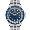 Часы Slazenger SL.09.2135.1.02 воплощают в себе элегантность и практичность, идеально подходящие для современных мужчин. Их синий циферблат, защищенный минеральным стекломМинеральное стеклоМинеральное стекло представляет собой искусственно выращенный минерал кварца. Такое стекло отличается особой устойчивостью к повреждениям и царапинам. Уступает по некоторым качествам сапфировому стеклу., заключен в серебристый корпус диаметром 45 мм, который изготовлен из прочного суперметалла. Неподвижный безельБезельВнешний ободок, закрепляющий стекло. В спортивных часах так называется поворотное кольцо с делениями на циферблате, выполняет роль таймера – замеряет отрезки времени на шкале. Неподвижный безель – элемент декора. Однонаправленно вращающийся безель на дайверских часах позволяет фиксировать моменты погружения и выныривания на поверхность. с IP-покрытиемIP-покрытиеМетод ионного напыления. Демонстрирует повышенную устойчивость к истиранию, окислению и химическим веществам. Под воздействием высокого давления и температуры около 1500°C молекулы металла надёжно соединяются с частицами корпуса часов. синего цвета. Часы оснащены удобным окошком даты и стрелками контрастного цвета. Надежный кварцевый механизм обеспечивает точность, а водозащита 5 ATM делает их устойчивыми к воздействию воды. Стальной браслет из суперметалла имеет раскладную застёжкуРаскладная застёжкаТакой тип застёжки используется только на браслетах из металла. Она никогда не раскрывается полностью, происходит разделение на 2 и более частей. Раскладывающая застёжка снизит вероятность потери часов к минимуму., что подчеркивает современный стиль и позволяет легко снимать часы. Люминесцентное покрытиеЛюминесцентное покрытиеПозволяет считывать показания времени в темноте. Производители наносят на стрелки, часовые индексы, безель или поверхность циферблата светонакопительный состав, дающий холодное свечение. на стрелках и метках обеспечивает отличную видимость в темноте.