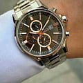 Часы Slazenger SL.09.2139.2.05 воплощают в себе элегантность и практичность, идеально подходящие для современных мужчин. Их серый циферблат защищен минеральным стекломМинеральное стеклоМинеральное стекло представляет собой искусственно выращенный минерал кварца. Такое стекло отличается особой устойчивостью к повреждениям и царапинам. Уступает по некоторым качествам сапфировому стеклу. и заключен в серебристый корпус диаметром 46 мм, который изготовлен из прочного суперметалла. Часы оснащены указателями второго часового пояса, дня недели и текущего времени в 24-х часовом формате на дополнительных малых циферблатах. Окошко даты расположено в положении 3 часов. Золотистые стрелки и метки имеют люминесцентное покрытиеЛюминесцентное покрытиеПозволяет считывать показания времени в темноте. Производители наносят на стрелки, часовые индексы, безель или поверхность циферблата светонакопительный состав, дающий холодное свечение., что позволяет легко считывать время в темноте. Надежный кварцевый механизм обеспечивает точность, а водозащита 5 ATM делает их устойчивыми к воздействию воды. Браслет из суперметалла имеет раскладную застёжкуРаскладная застёжкаТакой тип застёжки используется только на браслетах из металла. Она никогда не раскрывается полностью, происходит разделение на 2 и более частей. Раскладывающая застёжка снизит вероятность потери часов к минимуму., что подчеркивает современный стиль и позволяет легко снимать часы. Ширина ремешка 22 мм.