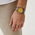 Часы Slazenger SL.09.2143.1.06  воплощают в себе элегантность и практичность, идеально подходящие для современных мужчин. Их желтый циферблат защищен минеральным стекломМинеральное стеклоМинеральное стекло представляет собой искусственно выращенный минерал кварца. Такое стекло отличается особой устойчивостью к повреждениям и царапинам. Уступает по некоторым качествам сапфировому стеклу. и заключен в серебристый корпус диаметром 41,5 мм, который изготовлен из прочного суперметалла. Окошко даты расположено в положении 3 часов. Надежный кварцевый механизм обеспечивает точность, а водозащита 5 ATM делает их устойчивыми к воздействию воды. Браслет из суперметалла имеет раскладную застёжкуРаскладная застёжкаТакой тип застёжки используется только на браслетах из металла. Она никогда не раскрывается полностью, происходит разделение на 2 и более частей. Раскладывающая застёжка снизит вероятность потери часов к минимуму., что подчеркивает современный стиль и позволяет легко снимать часы. Ширина браслета 22-26 мм.
