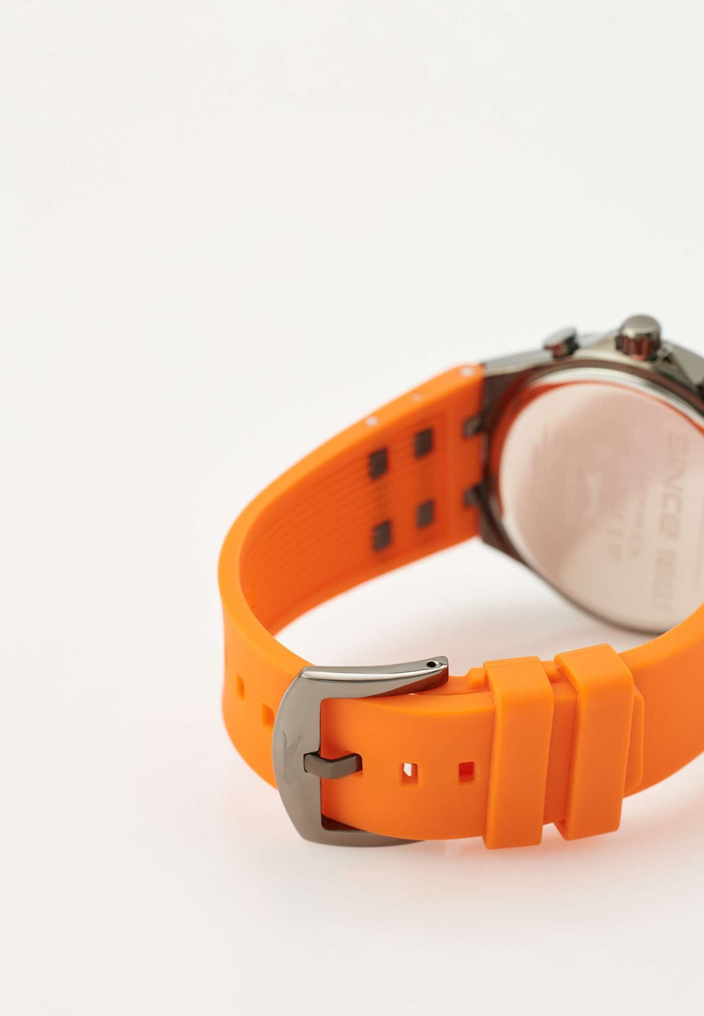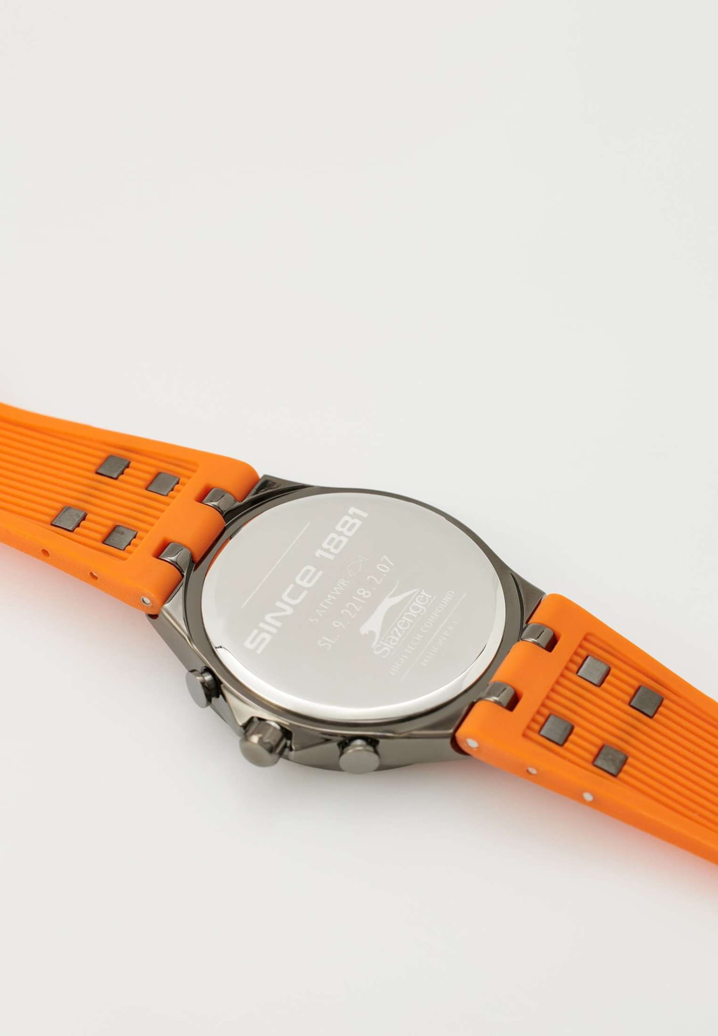 Мужские наручные часы Slazenger SL.09.2218.2.07 — идеальный аксессуар для тех, кто ценит стиль и функциональность. Эти часы, созданные известным британским брендом, отличаются высоким качеством и надежностью. Оснащенные кварцевым механизмом, они гарантируют точность хода и долгий срок службы. Корпус часов выполнен из прочного металла с серым IP-покрытиемIP-покрытиеМетод ионного напыления. Демонстрирует повышенную устойчивость к истиранию, окислению и химическим веществам. Под воздействием высокого давления и температуры около 1500°C молекулы металла надёжно соединяются с частицами корпуса часов., а такой же серый циферблат защищен минеральным стекломМинеральное стеклоМинеральное стекло представляет собой искусственно выращенный минерал кварца. Такое стекло отличается особой устойчивостью к повреждениям и царапинам. Уступает по некоторым качествам сапфировому стеклу., устойчивым к царапинам и повреждениям. Оранжевый резиновый ремешок с металлическими вставками с серым IP-покрытиемIP-покрытиеМетод ионного напыления. Демонстрирует повышенную устойчивость к истиранию, окислению и химическим веществам. Под воздействием высокого давления и температуры около 1500°C молекулы металла надёжно соединяются с частицами корпуса часов. и классической застежкой обеспечивает комфортное ношение и надежную фиксацию на запястье. Диаметр корпуса составляет 46 мм, а толщина — 12 мм, что придает часам современный и стильный вид. Благодаря водозащите уровня WR 50, вы можете не беспокоиться о случайных попаданиях влаги, что делает эти часы идеальными для повседневного использования. Стрелки снабжены люминесцентным покрытиемЛюминесцентное покрытиеПозволяет считывать показания времени в темноте. Производители наносят на стрелки, часовые индексы, безель или поверхность циферблата светонакопительный состав, дающий холодное свечение., что позволяет легко считывать время в темноте. Функциональность модели включает в себя отображение даты, дня недели и времени в 24-часовом формате на дополнительных малых циферблатах, что делает часы не только стильными, но и практичными.