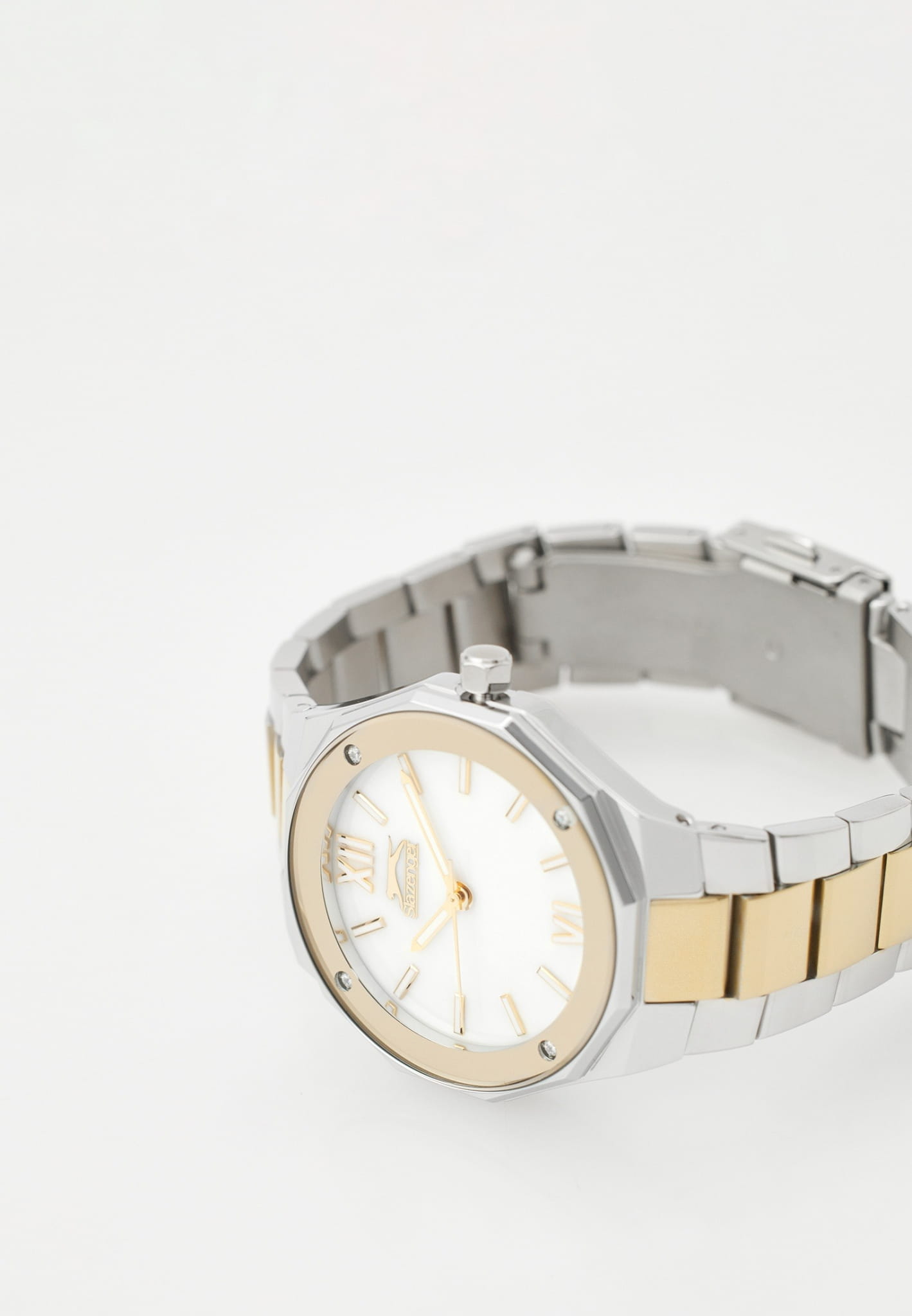 Часы Slazenger SL.09.2258.3.03 — это изысканный аксессуар, который гармонично подчеркнёт ваш индивидуальный стиль. Корпус и браслет выполнены из инновационного суперметалла — сплава на основе меди с пониженным содержанием цинка и никеля, обладающего специальным защитным покрытием, а циферблат украшен 4 кристаллами. Надёжный кварцевый механизм обеспечивает точный ход, а прочное минеральное стеклоМинеральное стеклоМинеральное стекло представляет собой искусственно выращенный минерал кварца. Такое стекло отличается особой устойчивостью к повреждениям и царапинам. Уступает по некоторым качествам сапфировому стеклу. устойчиво к царапинам и защищает перламутровый циферблат от внешних воздействий. Диаметр корпуса составляет 38 мм, толщина — всего 8 мм, что делает модель элегантной и удобной для ежедневного ношения. Водонепроницаемость до 3 бар позволяет не беспокоиться о случайных брызгах или каплях дождя. Стрелки с люминесцентным покрытиемЛюминесцентное покрытиеПозволяет считывать показания времени в темноте. Производители наносят на стрелки, часовые индексы, безель или поверхность циферблата светонакопительный состав, дающий холодное свечение. удобно подсвечиваются в темноте после зарядки на свету. Стальной браслет с частичным золотистым IP-покрытиемIP-покрытиеМетод ионного напыления. Демонстрирует повышенную устойчивость к истиранию, окислению и химическим веществам. Под воздействием высокого давления и температуры около 1500°C молекулы металла надёжно соединяются с частицами корпуса часов. и раскладной застёжкойРаскладная застёжкаТакой тип застёжки используется только на браслетах из металла. Она никогда не раскрывается полностью, происходит разделение на 2 и более частей. Раскладывающая застёжка снизит вероятность потери часов к минимуму. обеспечивает комфортную посадку. Часы станут отличным выбором как для повседневной жизни, так и для особых случаев, а также послужат прекрасным подарком на любой праздник.