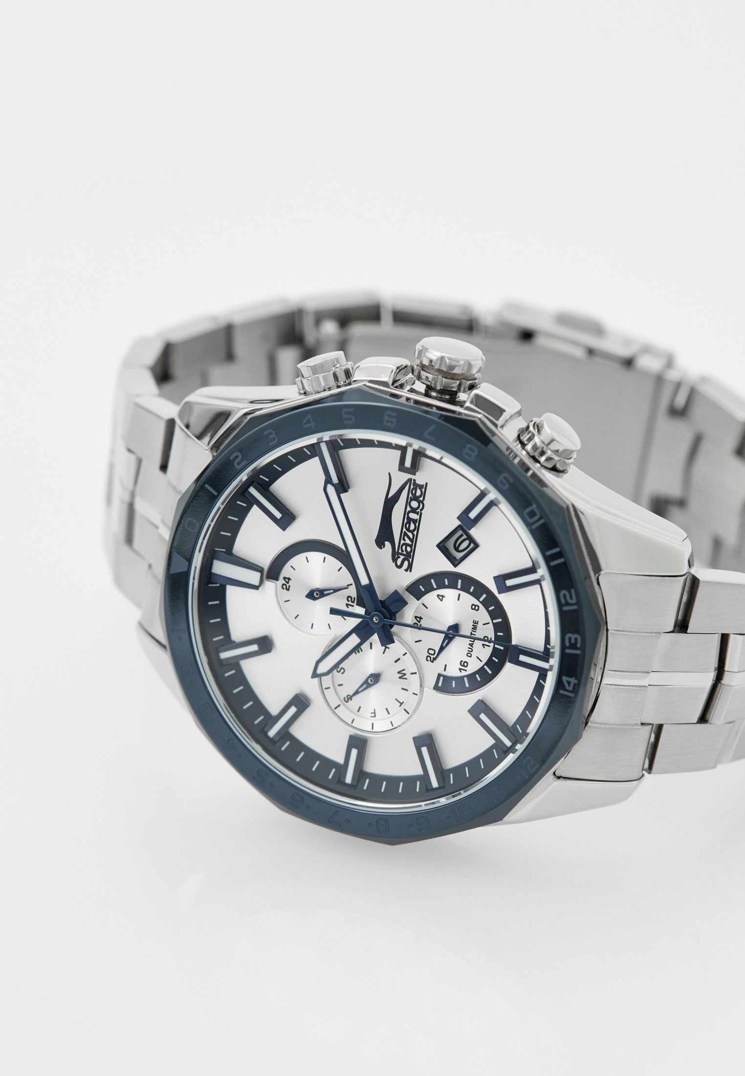 Часы Slazenger SL.09.2259.2.03 — это стильный и многофункциональный аксессуар, который станет достойным дополнением к вашему образу. Корпус и браслет модели выполнены из современного суперметалла — прочного сплава на основе меди с пониженным содержанием цинка и никеля, а также инновационным покрытием, что обеспечивает долговечность и привлекательный внешний вид. На безельБезельВнешний ободок, закрепляющий стекло. В спортивных часах так называется поворотное кольцо с делениями на циферблате, выполняет роль таймера – замеряет отрезки времени на шкале. Неподвижный безель – элемент декора. Однонаправленно вращающийся безель на дайверских часах позволяет фиксировать моменты погружения и выныривания на поверхность. нанесено синее IP-покрытиеIP-покрытиеМетод ионного напыления. Демонстрирует повышенную устойчивость к истиранию, окислению и химическим веществам. Под воздействием высокого давления и температуры около 1500°C молекулы металла надёжно соединяются с частицами корпуса часов., что придает аксессуару утончённый и универсальный внешний вид. Под минеральным стекломМинеральное стеклоМинеральное стекло представляет собой искусственно выращенный минерал кварца. Такое стекло отличается особой устойчивостью к повреждениям и царапинам. Уступает по некоторым качествам сапфировому стеклу. находится серебристый циферблат с дополнительными функциями: вынесенный 24-часовой индикатор, указатель дня недели, окно даты в положении между 4 и 5 часами, а также функция GMTGMTОтображение времени второго часового пояса.Такая функция особенно актуальна для путешественников и бизнесменов,которые общаются с людьми из разных стран,теперь вы всегда будете знать,какой час у вашего партнёра или близкого человека. для отслеживания второго часового поясаВторой часовой поясФункция, позволяющая отображать время двух часовых поясов одновременно. — всё это делает модель особенно удобной при активном образе жизни и путешествиях. Кварцевый механизм гарантирует высокую точность хода. Диаметр корпуса составляет 46 мм, толщина — 12 мм, что подчёркивает современный характер часов. Стрелки с люминесцентным покрытиемЛюминесцентное покрытиеПозволяет считывать показания времени в темноте. Производители наносят на стрелки, часовые индексы, безель или поверхность циферблата светонакопительный состав, дающий холодное свечение. удобно подсвечиваются в темноте после зарядки на свету. Стальной браслет с раскладной застёжкойРаскладная застёжкаТакой тип застёжки используется только на браслетах из металла. Она никогда не раскрывается полностью, происходит разделение на 2 и более частей. Раскладывающая застёжка снизит вероятность потери часов к минимуму. обеспечивает комфортную посадку. Водозащита до 5 атмосфер позволяет не опасаться случайных брызг или дождя. Часы идеально подходят для ежедневного ношения и особых случаев, а также станут отличным подарком.
