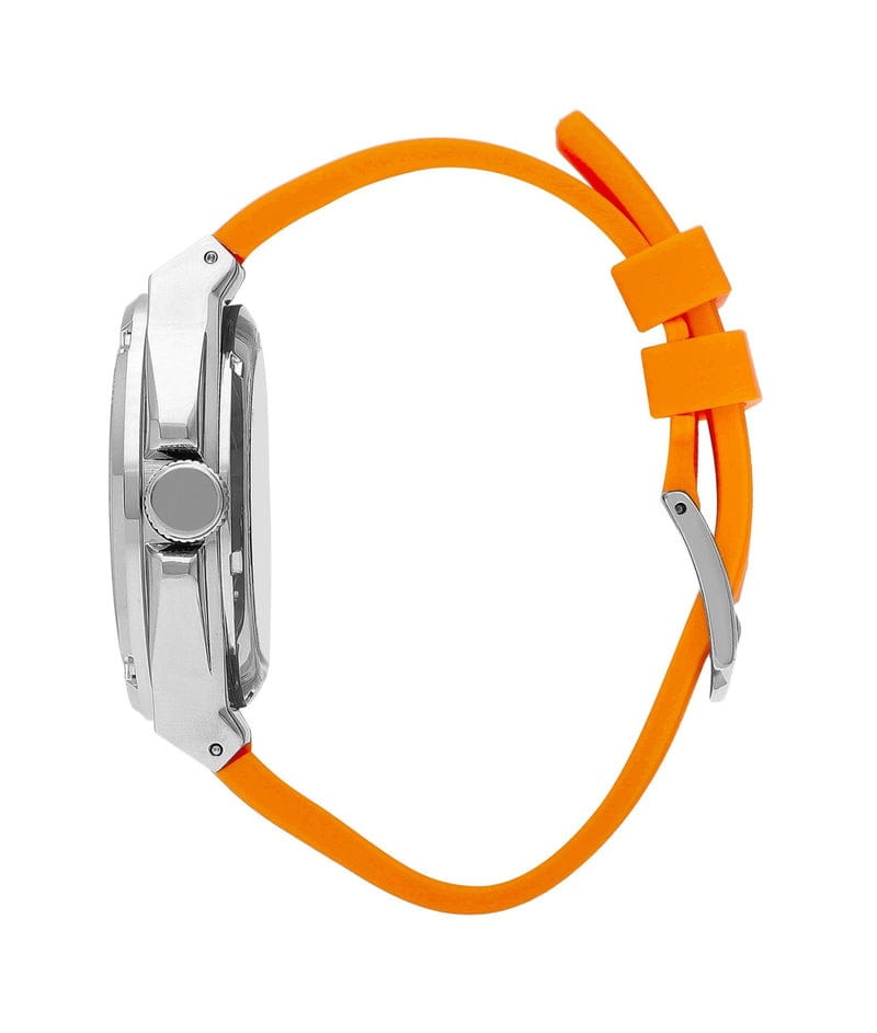 Часы Slazenger SL.09.2265.1.01 представляют собой гармоничное сочетание современного дизайна и надежных технических характеристик, созданное для динамичных и уверенных в себе людей. Модель оснащена механическим механизмом с автоподзаводом, что обеспечивает высокую точность и автономность работы. Круглый корпус диаметром 44 мм и толщиной 14 мм выполнен из прочного суперметалла, а сатинированный безельБезельВнешний ободок, закрепляющий стекло. В спортивных часах так называется поворотное кольцо с делениями на циферблате, выполняет роль таймера – замеряет отрезки времени на шкале. Неподвижный безель – элемент декора. Однонаправленно вращающийся безель на дайверских часах позволяет фиксировать моменты погружения и выныривания на поверхность. с 4 винтами придаёт изделию особую элегантность. Чёрный скелетонизированный циферблат с метками в виде точек и штрихов защищён прочным минеральным стекломМинеральное стеклоМинеральное стекло представляет собой искусственно выращенный минерал кварца. Такое стекло отличается особой устойчивостью к повреждениям и царапинам. Уступает по некоторым качествам сапфировому стеклу., что гарантирует устойчивость к царапинам и механическим воздействиям. Стрелки и метки с люминесцентным покрытиемЛюминесцентное покрытиеПозволяет считывать показания времени в темноте. Производители наносят на стрелки, часовые индексы, безель или поверхность циферблата светонакопительный состав, дающий холодное свечение. обеспечивают отличную читаемость времени даже в темноте, светясь после непродолжительного воздействия света. Заводная головка оснащена защитой для дополнительного удобства использования. Прозрачное окошко на задней крышке позволяет наблюдать за работой механизма, добавляя модели технического шарма. Удобный оранжевый силиконовый ремешок шириной 26 мм с классической застёжкой обеспечивает комфортную посадку на запястье. Водозащита 50WR позволяет не беспокоиться о попадании влаги при повседневном использовании. Вес часов составляет 116 грамм, что делает их надёжным и стильным аксессуаром для любого случая.