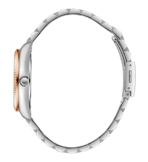 Женские элегантные наручные часы Slazenger SL.09.2338.4.07 сочетают в себе современный стиль и функциональность. Стильный корпус выполнен из суперметалла, а неповоротный безельБезельВнешний ободок, закрепляющий стекло. В спортивных часах так называется поворотное кольцо с делениями на циферблате, выполняет роль таймера – замеряет отрезки времени на шкале. Неподвижный безель – элемент декора. Однонаправленно вращающийся безель на дайверских часах позволяет фиксировать моменты погружения и выныривания на поверхность. с IP-покрытиемIP-покрытиеМетод ионного напыления. Демонстрирует повышенную устойчивость к истиранию, окислению и химическим веществам. Под воздействием высокого давления и температуры около 1500°C молекулы металла надёжно соединяются с частицами корпуса часов., придающий модели дополнительную прочность и элегантный внешний вид. Изысканный циферблат защищён минеральным стекломМинеральное стеклоМинеральное стекло представляет собой искусственно выращенный минерал кварца. Такое стекло отличается особой устойчивостью к повреждениям и царапинам. Уступает по некоторым качествам сапфировому стеклу., устойчивым к царапинам и повреждениям. Водонепроницаемость 3 АТМ позволяет использовать часы в повседневных условиях — при мытье рук или под лёгким дождём. Браслет из суперметалла с частичным IP-покрытиемIP-покрытиеМетод ионного напыления. Демонстрирует повышенную устойчивость к истиранию, окислению и химическим веществам. Под воздействием высокого давления и температуры около 1500°C молекулы металла надёжно соединяются с частицами корпуса часов. и с раскладной застёжкойРаскладная застёжкаТакой тип застёжки используется только на браслетах из металла. Она никогда не раскрывается полностью, происходит разделение на 2 и более частей. Раскладывающая застёжка снизит вероятность потери часов к минимуму., обеспечивающий надёжную фиксацию и комфорт при ношении. Окошко даты находится в положении 3 часа. Cтрелки покрыты люминесцентным покрытиемЛюминесцентное покрытиеПозволяет считывать показания времени в темноте. Производители наносят на стрелки, часовые индексы, безель или поверхность циферблата светонакопительный состав, дающий холодное свечение. для читаемости в условиях недостаточного освещения. Эта модель идеально подходит для женщин, ценящих стиль, функциональность и надёжность в одном аксессуаре.