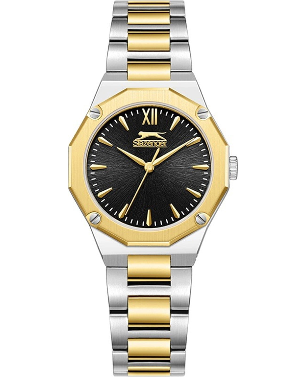 Slazenger SL.09.2374.3.02 — элегантные женские наручные часы, сочетающие изысканный дизайн и функциональность. Корпус выполнен из суперметалла, обеспечивающего лёгкость и прочность. Минеральное стеклоМинеральное стеклоМинеральное стекло представляет собой искусственно выращенный минерал кварца. Такое стекло отличается особой устойчивостью к повреждениям и царапинам. Уступает по некоторым качествам сапфировому стеклу. защищает циферблат от царапин и гарантирует превосходную читаемость. БезельБезельВнешний ободок, закрепляющий стекло. В спортивных часах так называется поворотное кольцо с делениями на циферблате, выполняет роль таймера – замеряет отрезки времени на шкале. Неподвижный безель – элемент декора. Однонаправленно вращающийся безель на дайверских часах позволяет фиксировать моменты погружения и выныривания на поверхность. с PVD-покрытиемPVDУльтратонкое покрытие наносится в технике вакуумного напыления, сочетает в себе нитрид титана особой прочности со слоем золота или оксида хрома. Несёт в себе декоративную или защитную функцию.. Циферблат подчёркивает стильный и современный образ. Браслет из суперметалла серебристого цвета с PVD-покрытиемPVDУльтратонкое покрытие наносится в технике вакуумного напыления, сочетает в себе нитрид титана особой прочности со слоем золота или оксида хрома. Несёт в себе декоративную или защитную функцию. обеспечивает комфортное ношение и надёжную фиксацию на запястье. Водонепроницаемость 30 метров делает модель устойчивой к случайным брызгам, что идеально подходит для повседневного использования.