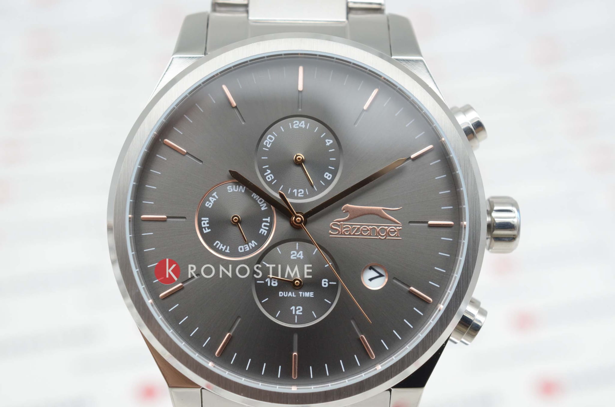 Мужские кварцевые часы Slazenger — это выразительный и функциональный аксессуар. Корпус диаметром 44 мм и толщиной 11 мм выполнен из нержавеющей стали 316L. Циферблат чёрного цвета оформлен индексами и стрелками. Циферблат защищён минеральным стекломМинеральное стеклоМинеральное стекло представляет собой искусственно выращенный минерал кварца. Такое стекло отличается особой устойчивостью к повреждениям и царапинам. Уступает по некоторым качествам сапфировому стеклу.. Механизм — кварцевый. Часы оснащены индикацией дня недели, даты, 12/24-часового формата времени и функцией второго часового пояса (GMT)Второй часовой поясФункция, позволяющая отображать время двух часовых поясов одновременно.. Окошко даты расположено между 4 и 5 часами. Часы оснащены стальным браслетом с раскладной застёжкойРаскладная застёжкаТакой тип застёжки используется только на браслетах из металла. Она никогда не раскрывается полностью, происходит разделение на 2 и более частей. Раскладывающая застёжка снизит вероятность потери часов к минимуму.. Водонепроницаемость 100 м позволяет использовать часы для плавания и повседневного ношения. Гарантия — 12 месяцев. Идеальный выбор для тех, кто ценит стиль, функциональность и качество.