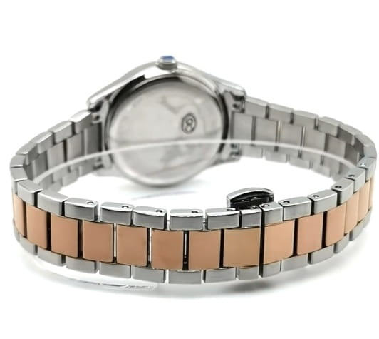 Женские кварцевые часы Slazenger — это элегантный аксессуар. Корпус диаметром 32 мм и толщиной 10 мм выполнен из нержавеющей стали 316L. БезельБезельВнешний ободок, закрепляющий стекло. В спортивных часах так называется поворотное кольцо с делениями на циферблате, выполняет роль таймера – замеряет отрезки времени на шкале. Неподвижный безель – элемент декора. Однонаправленно вращающийся безель на дайверских часах позволяет фиксировать моменты погружения и выныривания на поверхность. с IP-покрытиемIP-покрытиеМетод ионного напыления. Демонстрирует повышенную устойчивость к истиранию, окислению и химическим веществам. Под воздействием высокого давления и температуры около 1500°C молекулы металла надёжно соединяются с частицами корпуса часов.. Циферблат белого цвета с перламутровыми вставками оформлен индексами в виде фианитов. Циферблат защищён минеральным стекломМинеральное стеклоМинеральное стекло представляет собой искусственно выращенный минерал кварца. Такое стекло отличается особой устойчивостью к повреждениям и царапинам. Уступает по некоторым качествам сапфировому стеклу.. Механизм — кварцевый. Окошко даты расположено в положении 3 часов. Часы оснащены стальным браслетом с IP-покрытиемIP-покрытиеМетод ионного напыления. Демонстрирует повышенную устойчивость к истиранию, окислению и химическим веществам. Под воздействием высокого давления и температуры около 1500°C молекулы металла надёжно соединяются с частицами корпуса часов. и раскладной застёжкойРаскладная застёжкаТакой тип застёжки используется только на браслетах из металла. Она никогда не раскрывается полностью, происходит разделение на 2 и более частей. Раскладывающая застёжка снизит вероятность потери часов к минимуму.. Водонепроницаемость 50 м позволяет использовать часы в повседневных условиях. Гарантия — 12 месяцев. Идеальный выбор для тех, кто ценит стиль и качество.