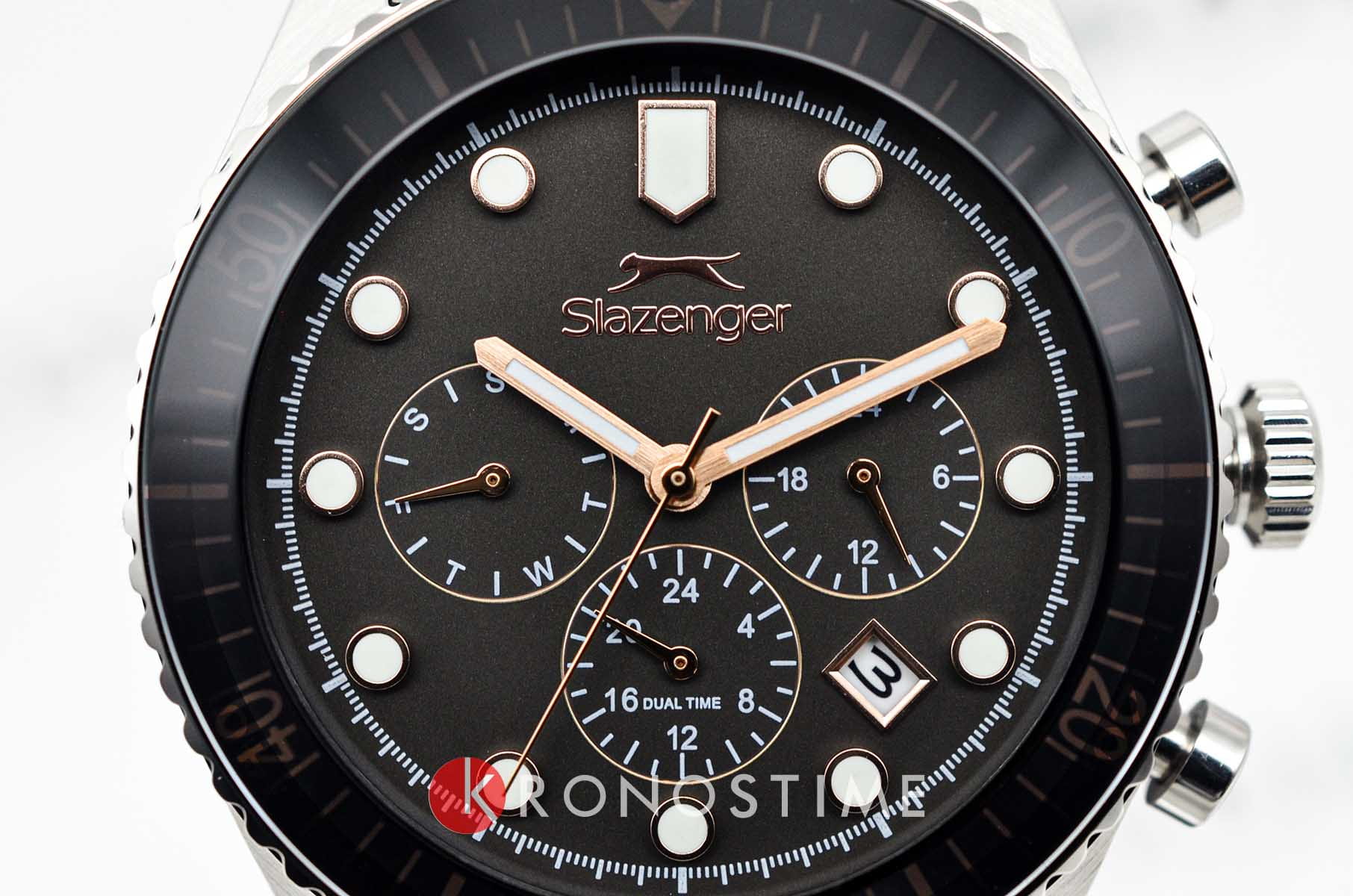 Мужские кварцевые часы Slazenger — это выразительный и функциональный аксессуар. Корпус диаметром 43 мм и толщиной 12 мм выполнен из нержавеющей стали 316L. Циферблат чёрного цвета оформлен индексами и стрелками. Циферблат защищён минеральным стекломМинеральное стеклоМинеральное стекло представляет собой искусственно выращенный минерал кварца. Такое стекло отличается особой устойчивостью к повреждениям и царапинам. Уступает по некоторым качествам сапфировому стеклу.. Механизм — кварцевый. Часы оснащены индикацией дня недели, даты, 12/24-часового формата времени и функцией второго часового пояса (GMT)Второй часовой поясФункция, позволяющая отображать время двух часовых поясов одновременно.. Окошко даты расположено между 4 и 5 часами. Стрелки и метки с люминесцентным покрытиемЛюминесцентное покрытиеПозволяет считывать показания времени в темноте. Производители наносят на стрелки, часовые индексы, безель или поверхность циферблата светонакопительный состав, дающий холодное свечение., обеспечивающим хорошую читаемость в темноте. БезельБезельВнешний ободок, закрепляющий стекло. В спортивных часах так называется поворотное кольцо с делениями на циферблате, выполняет роль таймера – замеряет отрезки времени на шкале. Неподвижный безель – элемент декора. Однонаправленно вращающийся безель на дайверских часах позволяет фиксировать моменты погружения и выныривания на поверхность. с IP-покрытиемIP-покрытиеМетод ионного напыления. Демонстрирует повышенную устойчивость к истиранию, окислению и химическим веществам. Под воздействием высокого давления и температуры около 1500°C молекулы металла надёжно соединяются с частицами корпуса часов.. Часы оснащены стальным браслетом с раскладной застёжкойРаскладная застёжкаТакой тип застёжки используется только на браслетах из металла. Она никогда не раскрывается полностью, происходит разделение на 2 и более частей. Раскладывающая застёжка снизит вероятность потери часов к минимуму.. Водонепроницаемость 100 м позволяет использовать часы для плавания и повседневного ношения. Гарантия — 12 месяцев. Идеальный выбор для тех, кто ценит стиль, функциональность и качество.