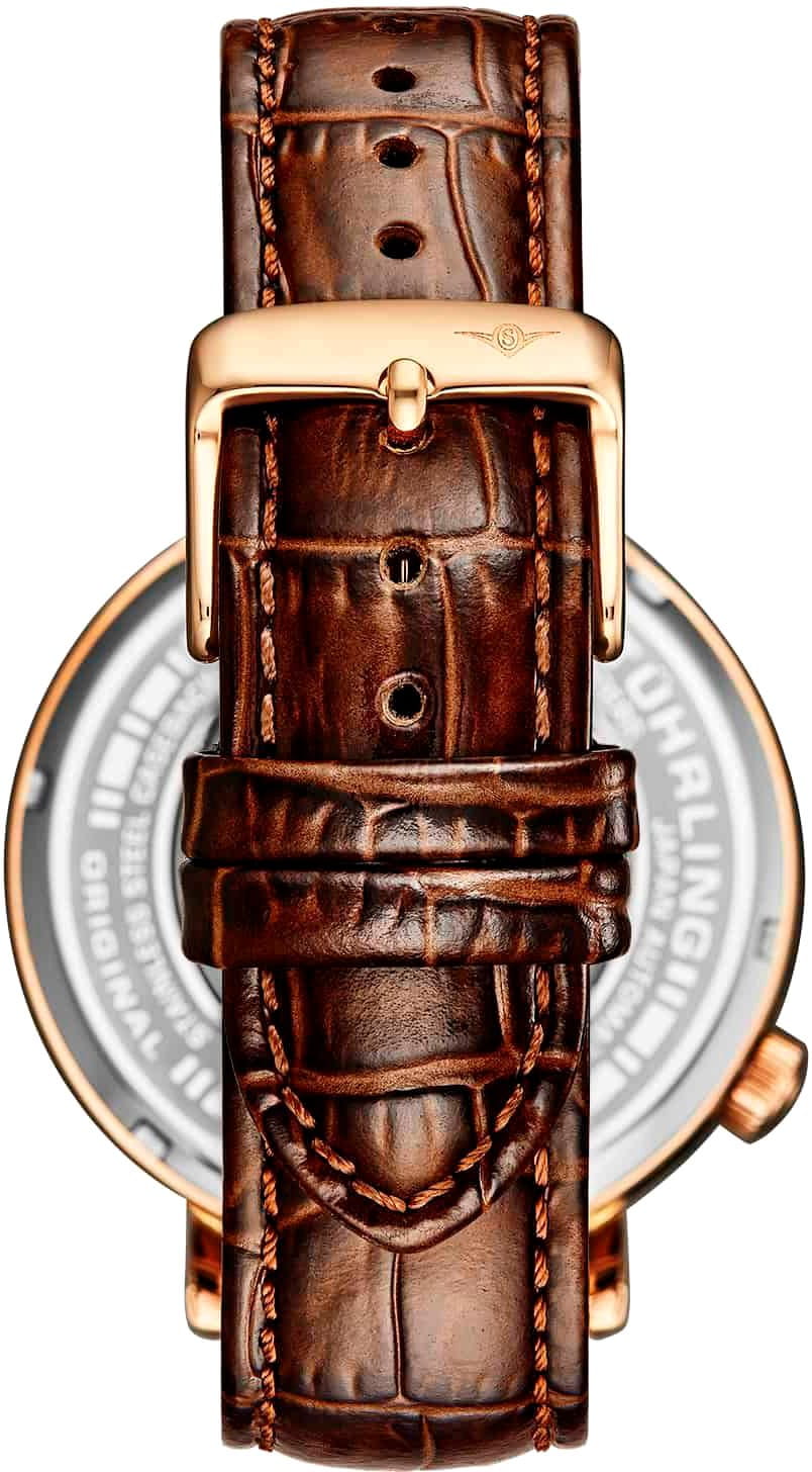 Stuhrling 1021.07 — элегантные механические мужские часы с выразительным дизайном и открытым сердцем, подчёркивающим красоту работы механизма. Глубокий циферблат с лаконичными метками и аккуратным окном open-heart создаёт гармоничный баланс между классикой и современной динамикой. Корпус из нержавеющей стали с PVD-покрытиемPVDУльтратонкое покрытие наносится в технике вакуумного напыления, сочетает в себе нитрид титана особой прочности со слоем золота или оксида хрома. Несёт в себе декоративную или защитную функцию. придаёт модели строгость и долговечность, а ремешок из натуральной кожи с фактурой крокодила обеспечивает комфорт и безупречный внешний вид. Прочное стекло KrysternaKrysternaKrysterna — инновационное стекло для наручных часов. Благодаря уникальной структуре, Krysterna объединяет ключевые преимущества двух материалов: твердость сапфира, защищающую от царапин, и гибкость минерального стекла, обеспечивающую устойчивость к деформациям. Такая комбинация делает его идеальным решением для часов, подверженных экстремальным нагрузкам, сохраняя при этом оптическую прозрачность. защищает циферблат от царапин и сохраняет прозрачность даже при активном использовании. Stuhrling — воплощение технической точности и утончённого стиля для мужчин, ценящих эстетику классических механических часов.