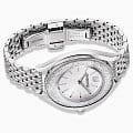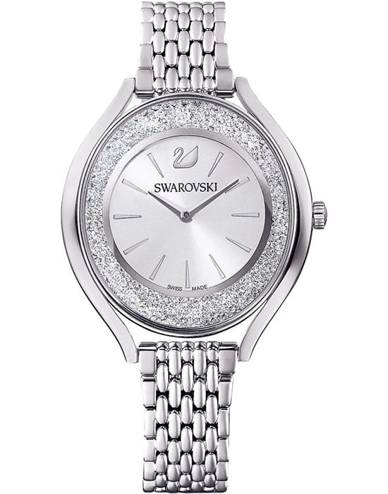Swarovski 5519462 — элегантные женские часы из коллекции Crystalline, сочетающие изысканный дизайн с высоким качеством. Корпус диаметром 35,5 мм выполнен из нержавеющей стали. Минеральное стеклоМинеральное стеклоМинеральное стекло представляет собой искусственно выращенный минерал кварца. Такое стекло отличается особой устойчивостью к повреждениям и царапинам. Уступает по некоторым качествам сапфировому стеклу. защищает циферблат от царапин и повреждений. Более 1300 кристаллов Swarovski украшают корпус, создавая ослепительный блеск. Серебристый циферблат с изящными метками и стрелками подчёркивает утончённость дизайна. Логотип Swarovski в виде лебедя расположен на отметке «12 часов», добавляя уникальности. Часы оснащены швейцарским кварцевым механизмом, обеспечивающим высокую точность хода. Браслет из нержавеющей стали гарантирует комфортное ношение. Застёжка-бабочка с кнопкамиЗастёжка "бабочка"Такой вид застёжки дополняется предохранителями, помогающими избежать случайного раскрытия браслета. Обладают изящным исполнением. обеспечивает надёжную фиксацию на запястье. Водозащита до 5 ATM (50 метров) делает часы подходящими для повседневного использования. Swarovski 5519462 — идеальный выбор для женщин, ценящих элегантность и блеск.