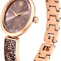 Часы Swarovski 5656857 представляют собой воплощение утонченной элегантности и функциональности, идеально подходящие для современных женщин. Эти швейцарские часы оснащены надежным кварцевым механизмом, обеспечивающим высокую точность. Овальный корпус выполнен из нержавеющей стали розовым PVDPVDУльтратонкое покрытие наносится в технике вакуумного напыления, сочетает в себе нитрид титана особой прочности со слоем золота или оксида хрома. Несёт в себе декоративную или защитную функцию.-покрытием, придающим ему изысканный вид. Под минеральным стекломМинеральное стеклоМинеральное стекло представляет собой искусственно выращенный минерал кварца. Такое стекло отличается особой устойчивостью к повреждениям и царапинам. Уступает по некоторым качествам сапфировому стеклу. скрывается циферблат коричневого цвета, выполненный по технологии Sunray (солнечные лучи), с логотипом Swarovski в виде лебедя в положении 12 часов и метками в виде точек из кристаллов круглой огранки. Изящные стрелки в стиле Dauphine гармонично дополняют дизайн, а заводная головка украшена кристаллом круглой огранки, добавляя дополнительный акцент. Стальной регулируемый браслет ювелирной застежкой с розовым PVDPVDУльтратонкое покрытие наносится в технике вакуумного напыления, сочетает в себе нитрид титана особой прочности со слоем золота или оксида хрома. Несёт в себе декоративную или защитную функцию. покрытием декорирован коричневыми кристаллами Swarovski, создающими изысканный мерцающий эффект. Водозащита 50WR позволяет носить часы в различных условиях, не беспокоясь о попадании влаги. Эти часы станут идеальным аксессуаром как для повседневного, так и для вечернего наряда, подчеркивая индивидуальность и изысканный вкус их обладательницы.