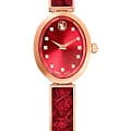 Часы Swarovski 5675998 представляют собой воплощение утонченной элегантности и функциональности, идеально подходящие для современных женщин. Эти швейцарские часы оснащены надежным кварцевым механизмом, обеспечивающим высокую точность. Овальный корпус выполнен из нержавеющей стали розовым PVDPVDУльтратонкое покрытие наносится в технике вакуумного напыления, сочетает в себе нитрид титана особой прочности со слоем золота или оксида хрома. Несёт в себе декоративную или защитную функцию.-покрытием, придающим ему изысканный вид. Под минеральным стекломМинеральное стеклоМинеральное стекло представляет собой искусственно выращенный минерал кварца. Такое стекло отличается особой устойчивостью к повреждениям и царапинам. Уступает по некоторым качествам сапфировому стеклу. скрывается циферблат красного цвета, выполненный по технологии Sunray (солнечные лучи), с логотипом Swarovski в виде лебедя в положении 12 часов и метками в виде точек из кристаллов круглой огранки. Изящные стрелки в стиле Dauphine гармонично дополняют дизайн, а заводная головка украшена кристаллом круглой огранки, добавляя дополнительный акцент. Стальной регулируемый браслет ювелирной застежкой с розовым PVDPVDУльтратонкое покрытие наносится в технике вакуумного напыления, сочетает в себе нитрид титана особой прочности со слоем золота или оксида хрома. Несёт в себе декоративную или защитную функцию. покрытием декорирован кожаной вставкой, имитирующей кожу Дракона. Водозащита 50WR позволяет носить часы в различных условиях, не беспокоясь о попадании влаги. Эти часы станут идеальным аксессуаром как для повседневного, так и для вечернего наряда, подчеркивая индивидуальность и изысканный вкус их обладательницы.