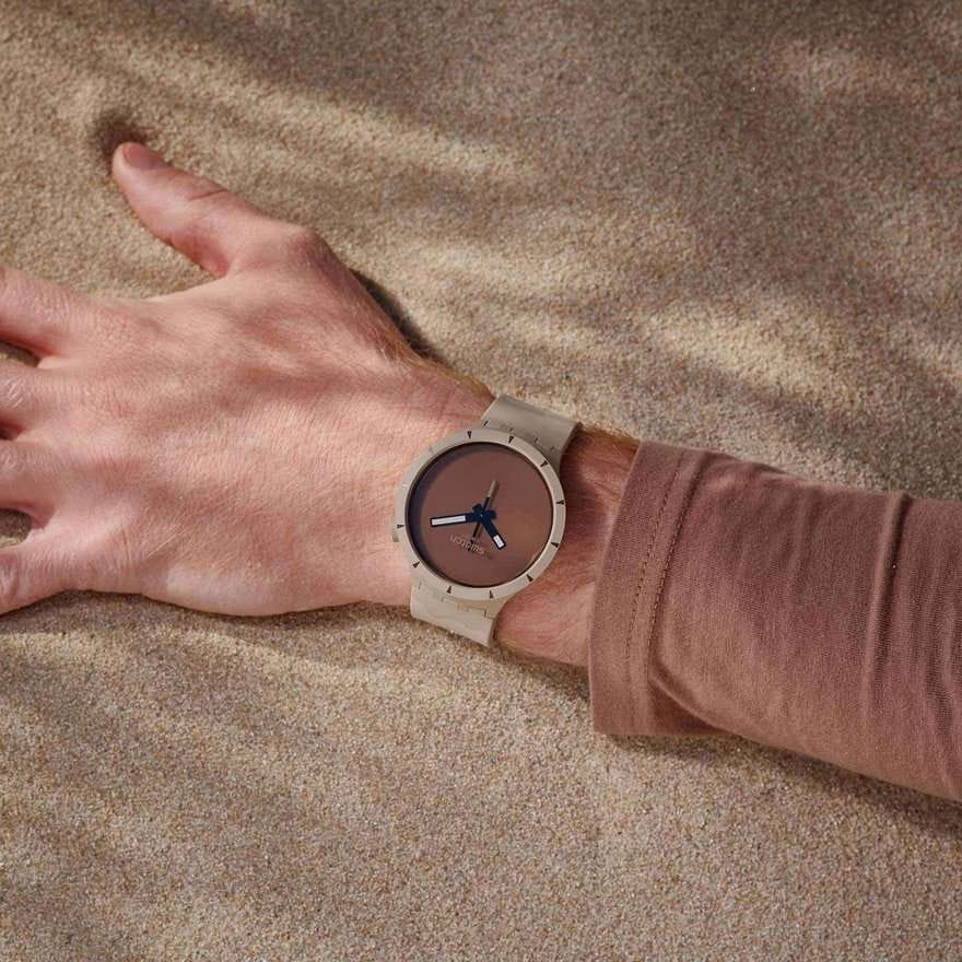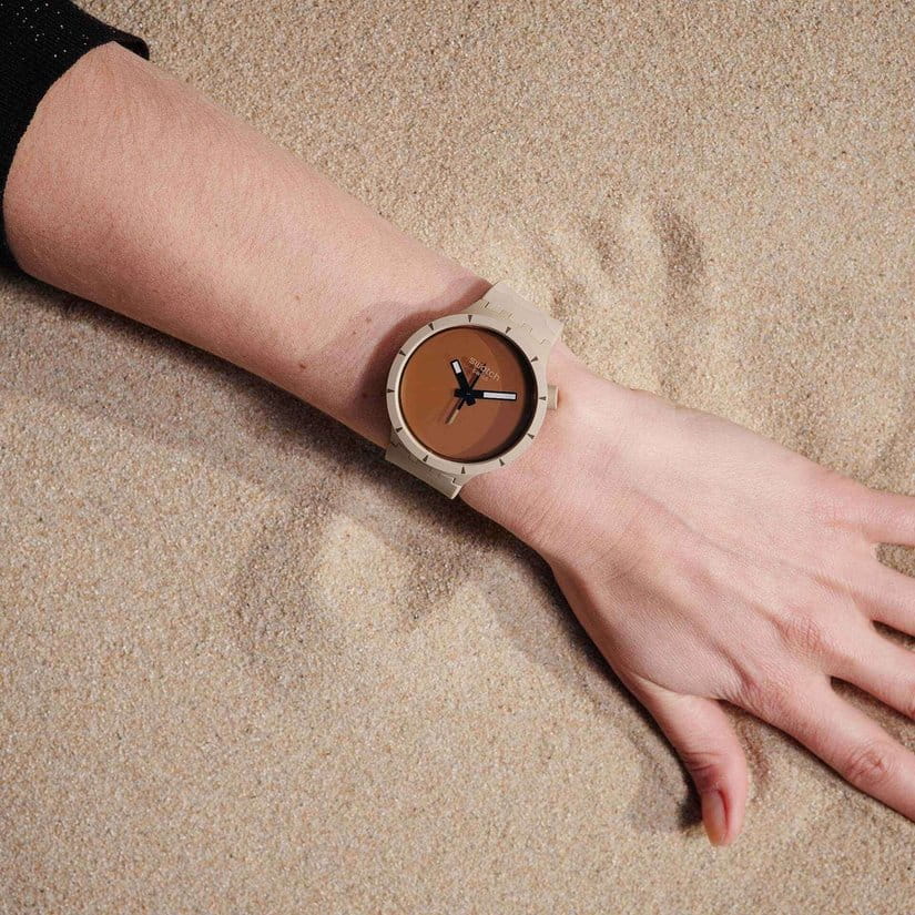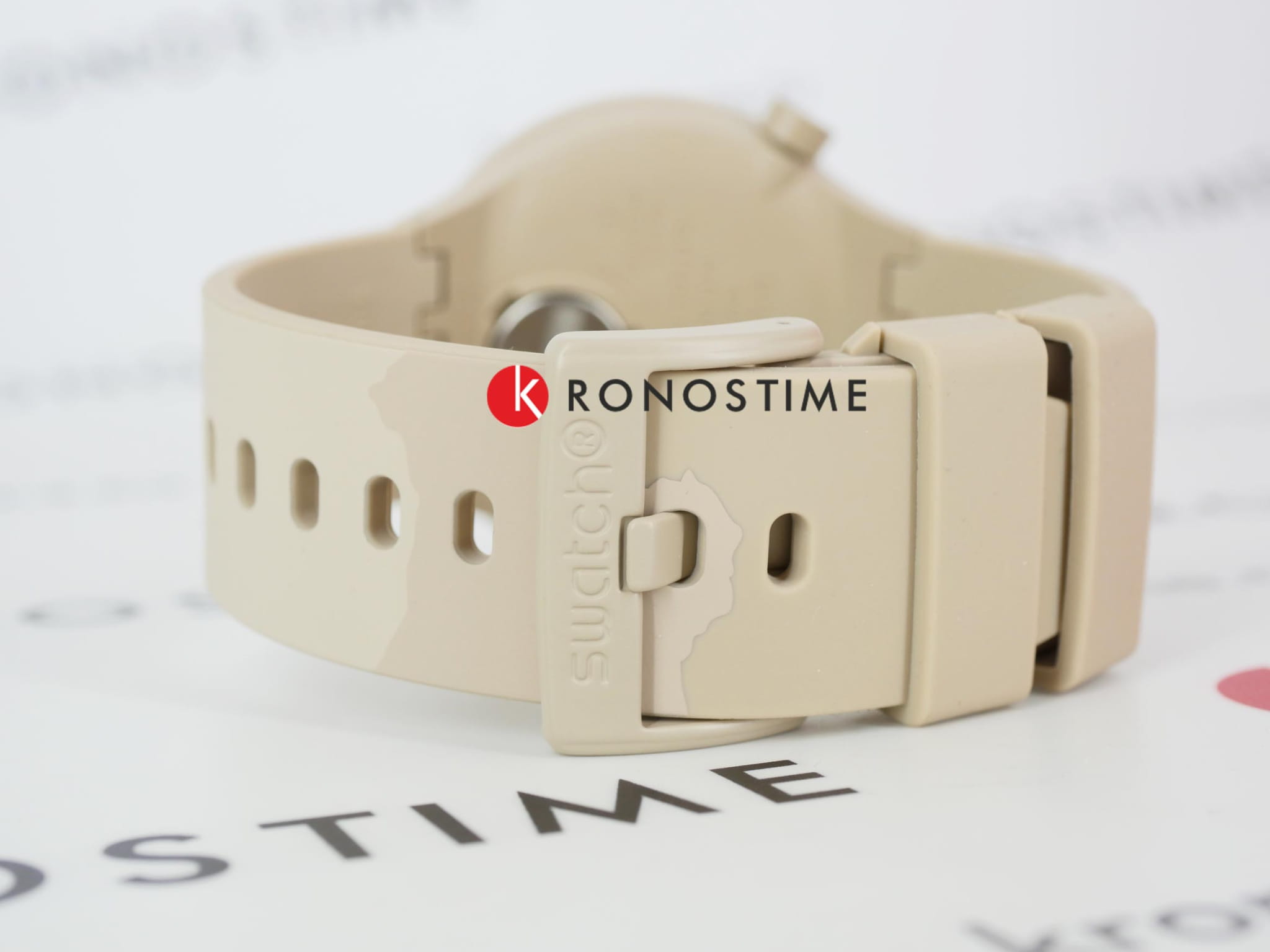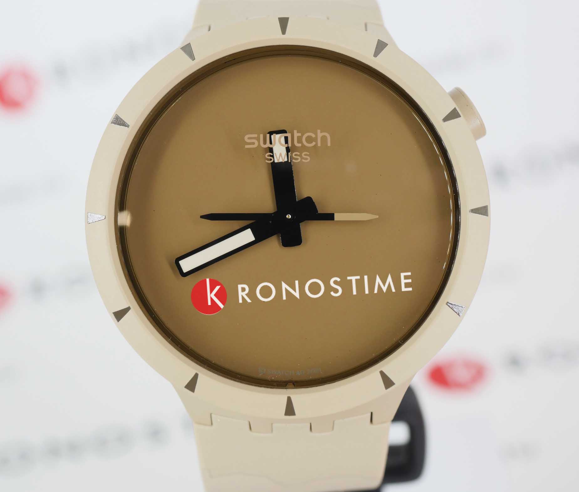 Часы Swatch SB03C101 — это стильный и современный аксессуар для тех, кто ценит лёгкость и комфорт. Часы идеально подойдут как для мужчин, так и для женщин. Корпус из биокерамикиБиокерамикаБиокерамика — это материал, который на две трети состоит из керамики, на одну треть — из биопластика. Он сочетает в себе лучшие качества обоих материалов и обладает прочностью и шелковистой на ощупь текстурой., а ремешок — из однотонного матово-бежевого силикона. Коричневый циферблат подчеркивает белые акценты на темных стрелках. Секундная стрелка, прообразом которой стала стрелка компаса, усиливает дух приключений. На часовую и минутную стрелки нанесено люминесцентное покрытиеЛюминесцентное покрытиеПозволяет считывать показания времени в темноте. Производители наносят на стрелки, часовые индексы, безель или поверхность циферблата светонакопительный состав, дающий холодное свечение., которое светится в темноте, создавая необычное изображение. Водозащита 30 метров делает часы практичными для повседневного использования. Эти часы подойдут для повседневного ношения и станут ярким акцентом в вашем наряде.