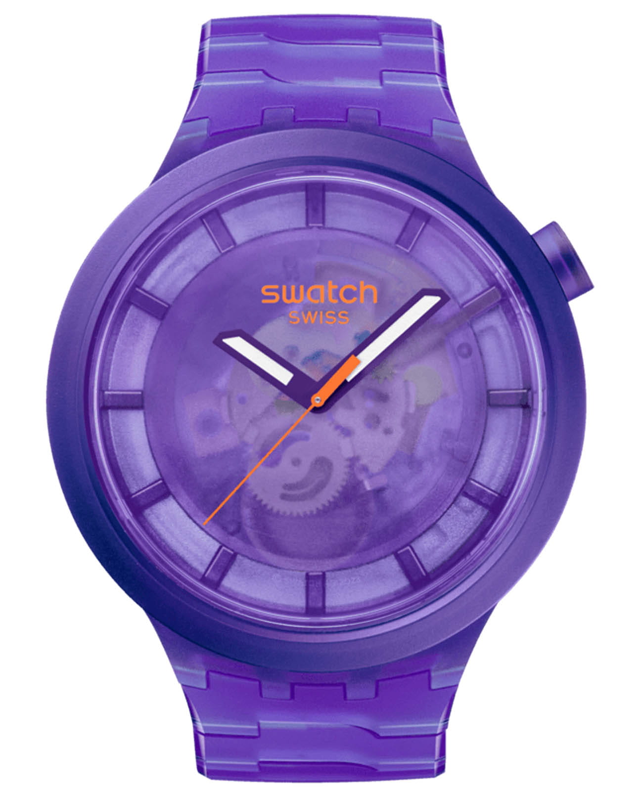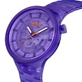 Часы Swatch SB05V103 — это стильный и современный аксессуар для тех, кто ценит лёгкость и комфорт. Часы идеально подойдут как для мужчин, так и для женщин. Эти большие часы фиолетового цвета могут похвастаться прозрачным корпусом и циферблатом фиолетового оттенка, изготовленными из биосодержащих материалов, и браслетом с застежкой-бабочкойЗастёжка "бабочка"Такой вид застёжки дополняется предохранителями, помогающими избежать случайного раскрытия браслета. Обладают изящным исполнением. . Прозрачный фиолетовый циферблат с биологическим покрытием позволяет видеть механизм, а на часовую и минутную стрелки нанесено люминесцентное покрытиеЛюминесцентное покрытиеПозволяет считывать показания времени в темноте. Производители наносят на стрелки, часовые индексы, безель или поверхность циферблата светонакопительный состав, дающий холодное свечение., которое светится в темноте, создавая необычное изображение. Водозащита 30 метров делает часы практичными для повседневного использования. Эти часы подойдут для повседневного ношения и станут ярким акцентом в вашем наряде.