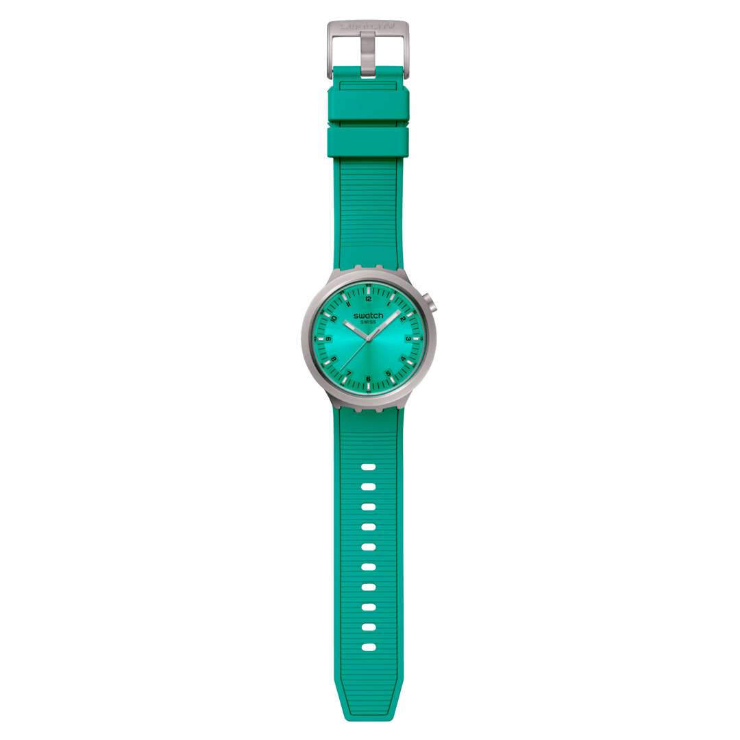 Часы Swatch SB07S100 — это стильный и современный аксессуар для тех, кто ценит лёгкость и комфорт. Часы идеально подойдут как для мужчин, так и для женщин. На бирюзовом циферблате с радиальной полировкой этих крупных часов размещены светящиеся в темноте индексы, черные цифры и минутная шкала, серебристые стрелки со светящимися в темноте благодаря люминесцентному покрытиюЛюминесцентное покрытиеПозволяет считывать показания времени в темноте. Производители наносят на стрелки, часовые индексы, безель или поверхность циферблата светонакопительный состав, дающий холодное свечение., отметками на минутной и часовой. Матированные методом пескоструйной обработки корпус из нержавеющей стали эффектно контрастируют с фактурным бирюзовым ремешком с тренчиками в тон и стальной полупряжкой. Водозащита 30 метров делает часы практичными для повседневного использования. Эти часы подойдут для повседневного ношения и станут ярким акцентом в вашем наряде.