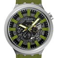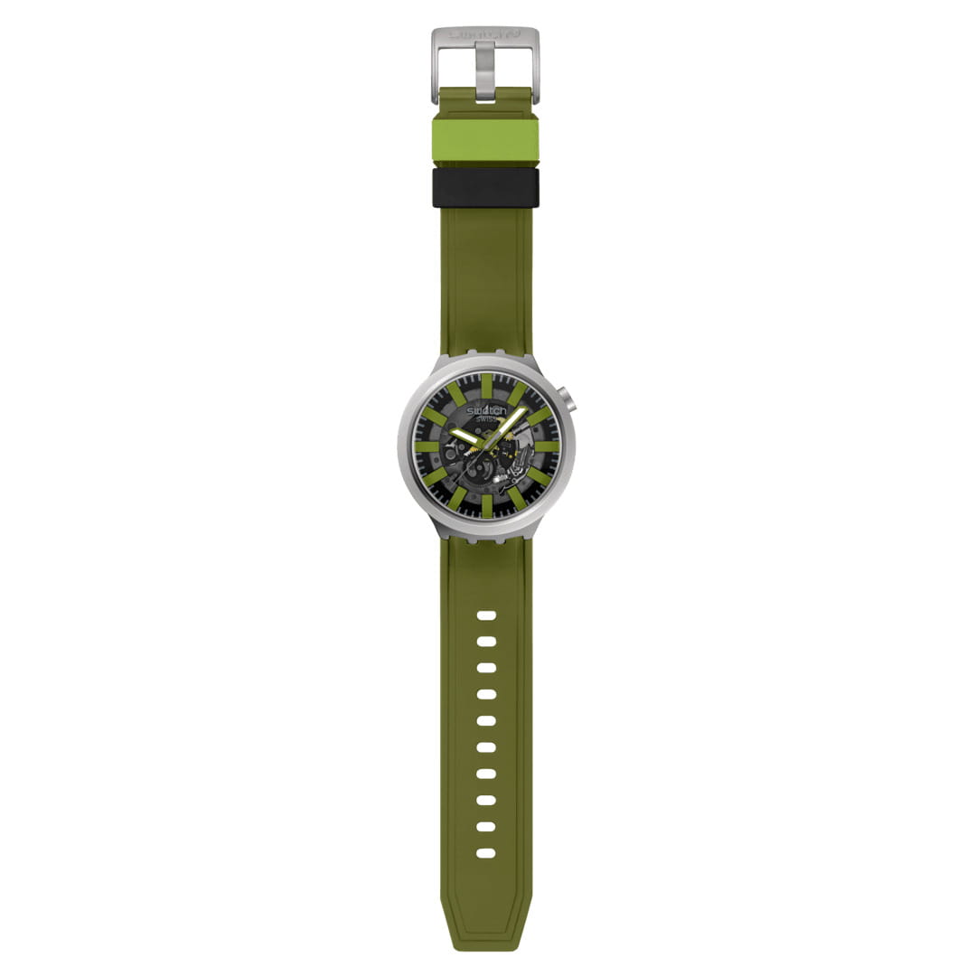Часы Swatch SB07S118 — это стильный и современный аксессуар для тех, кто ценит лёгкость и комфорт. Часы идеально подойдут как для мужчин, так и для женщин. Эти крупные часы с черно-серым открытым циферблатом, сквозь который просматриваются элементы ходового механизма, зелеными часовыми отметками и серой минутной шкалой смотрятся очень эффектно. Отсчет времени ведут часовая и минутная стрелки зеленого цвета с эффектом свечения в темноте благодаря люминесцентному покрытиюЛюминесцентное покрытиеПозволяет считывать показания времени в темноте. Производители наносят на стрелки, часовые индексы, безель или поверхность циферблата светонакопительный состав, дающий холодное свечение., а также серая секундная стрелка. Корпус и пушер из нержавеющей стали, матированные методом пескоструйной обработки, выделяются на фоне темно-зеленого матового ремешка с черным и зеленым тренчиками и стальной полупряжкой. Водозащита 30 метров делает часы практичными для повседневного использования. Эти часы подойдут для повседневного ношения и станут ярким акцентом в вашем наряде.