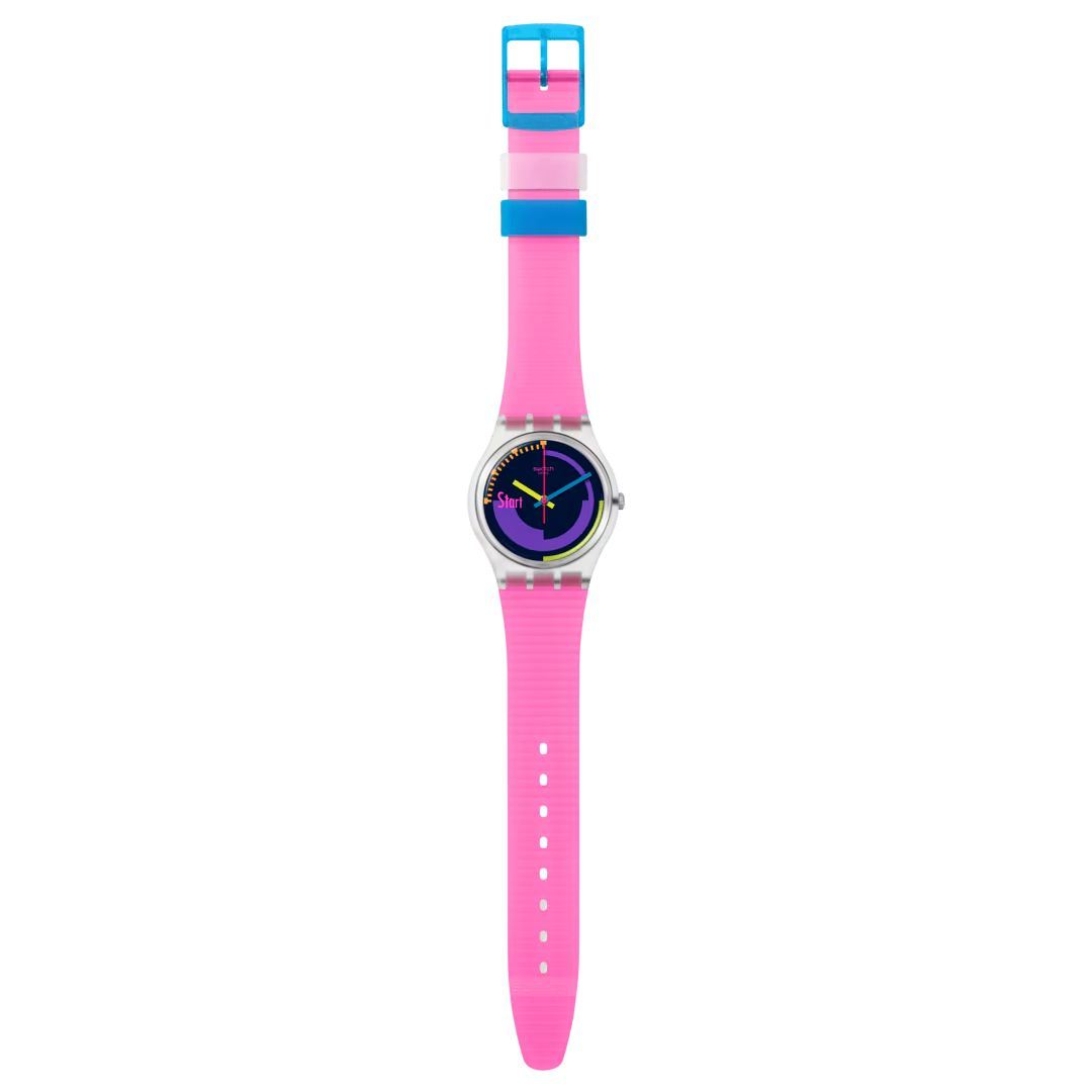 Эти ярко окрашенные ретро-часы Swatch SO28K111 вдохновлены часами Swatch из 90-х: SKYCHART GN705. Их многоцветный неоновый циферблат помещен в прозрачный корпус, изготовленный из биоматериала. Ремешок силиконовый ярко-розового цвета и голубая пряжка завершают неоновый образ этих винтажных часов Swatch.