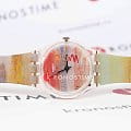 Часы Swatch SO28Z700 — эффектный и надежный аксессуар. Эти часы из коллекции Swatch x Tate Gallery обладают прозрачным глянцево-розовым корпусом и стеклом из биоматериала. Циферблат и матово-розовый ремешок украшены принтом с репродукцией картины Тёрнера (JMW Turner) «Алый закат» («The Scarlet Sunset»). Время отсчитывают серебристые стрелки с люминесцентным покрытиемЛюминесцентное покрытиеПозволяет считывать показания времени в темноте. Производители наносят на стрелки, часовые индексы, безель или поверхность циферблата светонакопительный состав, дающий холодное свечение., которые светятся в темноте, а солнце на циферблате меняет цвет в течение дня благодаря разноцветному календарному колесу. На прозрачном матовом ремешке расположен логотип Tate Gallery. Ремешок из силикона на стандартной застёжке. Внутри часов установлен надежный кварцевый механизм, который обеспечивает точность хода. Эти часы водонепроницаемы до 30 метров, что позволяет не беспокоиться о случайных брызгах или дождевых каплях. Swatch SO28Z700 — это идеальный выбор для тех, кто ценит сочетание стиля, комфорта и функциональности в одном аксессуаре.