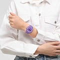 Часы Swatch SO29V700 — стильный и надежный аксессуар. Эти часы Swatch Pride 2023 Special имеют фиолетовый циферблат и фиолетовое стекло из биоматериала в корпусе из тех же материалов. Часовая и минутная стрелки черные, при этом минутная стрелка символизирует значение фиолетового цвета в флаге Прайда: дух. Соответствующий ремешок этих фиолетовых часов включает две петли, которые, соединяясь, образуют радугу. Окошко даты и дня недели расположены на 3 часа. Ремешок силиконовый на классической застежке. Внутри часов установлен надежный кварцевый механизм, который обеспечивает точность хода. Эти часы водонепроницаемы до 30 метров, что позволяет не беспокоиться о случайных брызгах или дождевых каплях. Swatch SSO29V700 — это идеальный выбор для тех, кто ценит сочетание стиля, комфорта и функциональности в одном аксессуаре.
